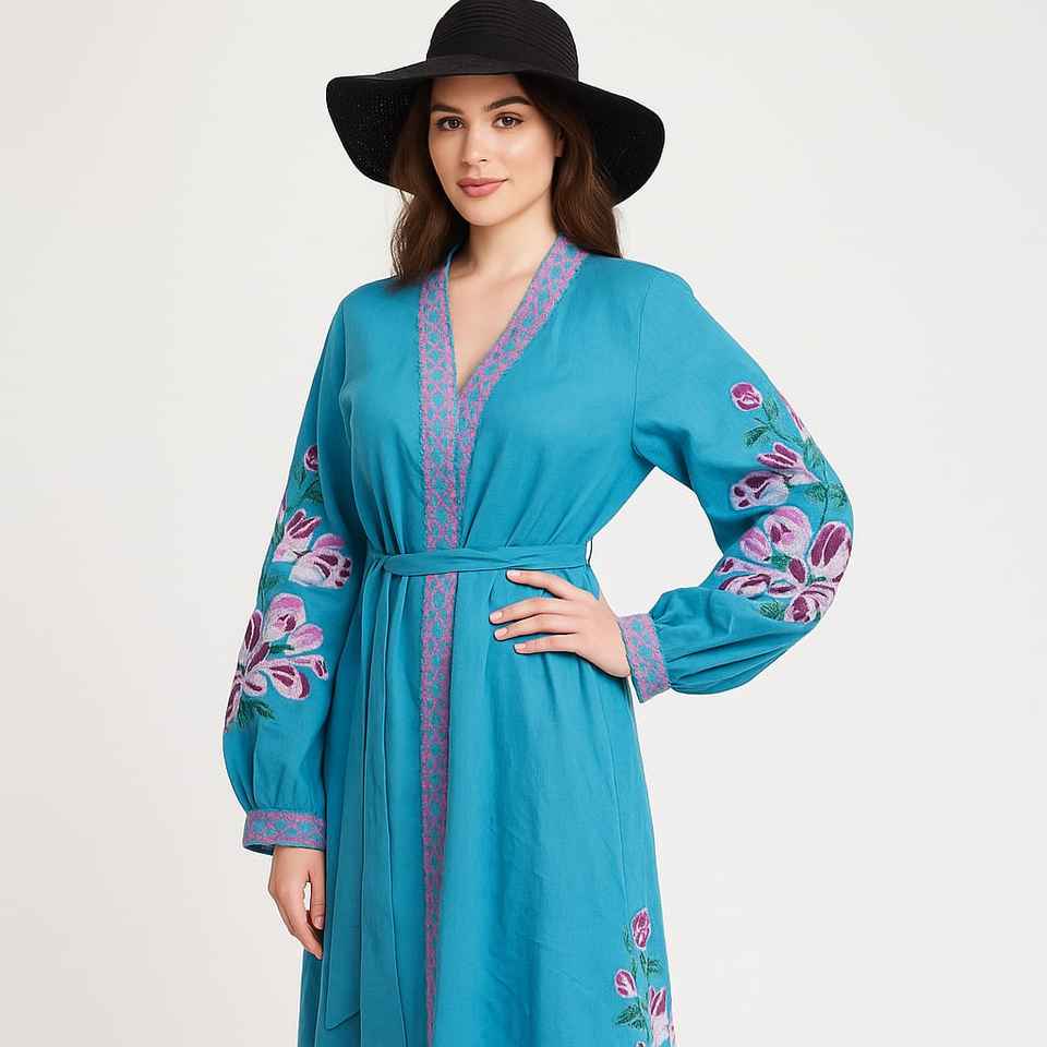 ชุดเดรสยาวแขนยาวสไตล์เรียบง่ายผ้าเรยอนสำหรับสตรีชาวมุสลิม ปักลายและระบายอากาศได้ดี ชุดอาบายะแบบอาหรับสำหรับวันอีด ไซส์เดียวใส่ได้ทุกคน ขั้นต่ำสั่งซื้อ 2 ชิ้น