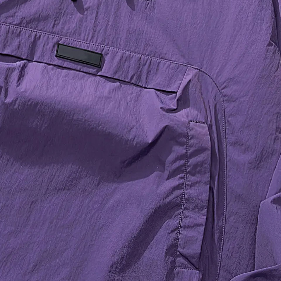 เสื้อแจ็คเก็ตกันลมสำหรับผู้ชาย สีม่วง แขนยาว ผ้าไนลอนผสม ทนทาน คุณภาพดีเยี่ยม แบบมีฮู้ด ซิปครึ่งตัว