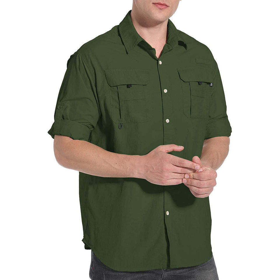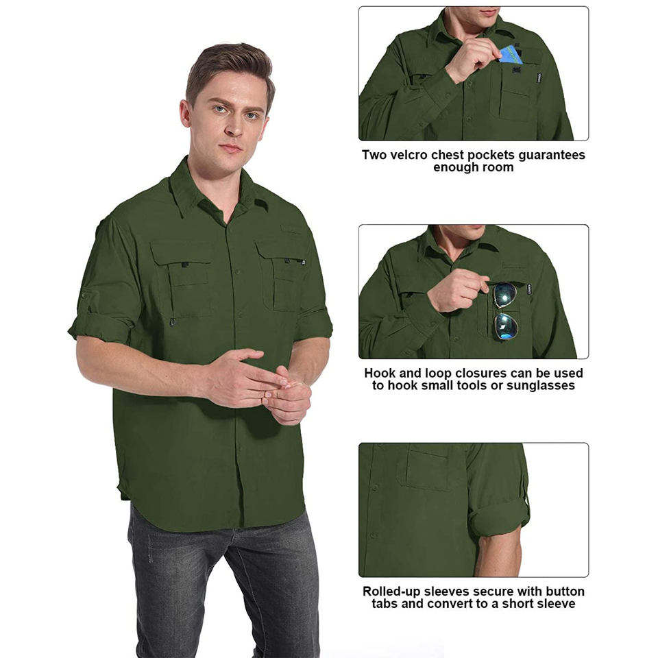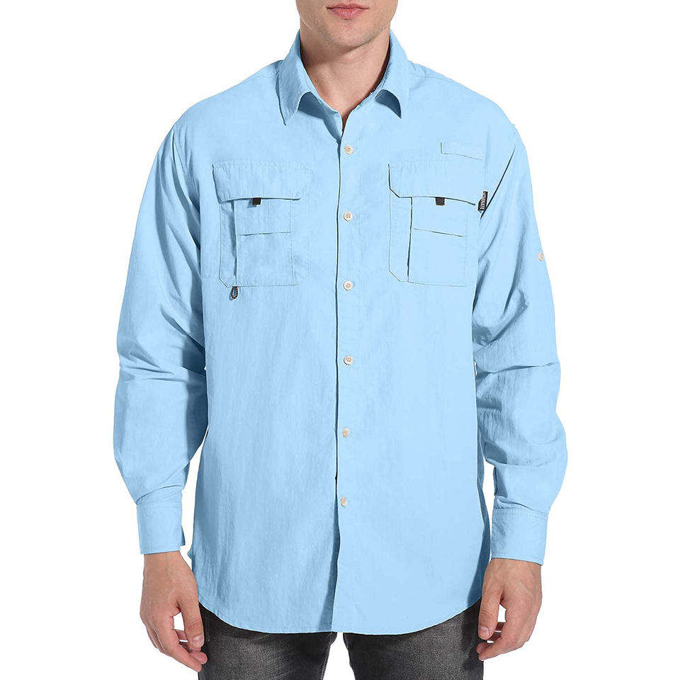 เสื้อตกปลาแขนยาวแบบกระดุมโรงเรียนเก่าเสื้อตกปลาแบบแห้งเร็วกันยูวีระบายอากาศได้ดีสดชื่น