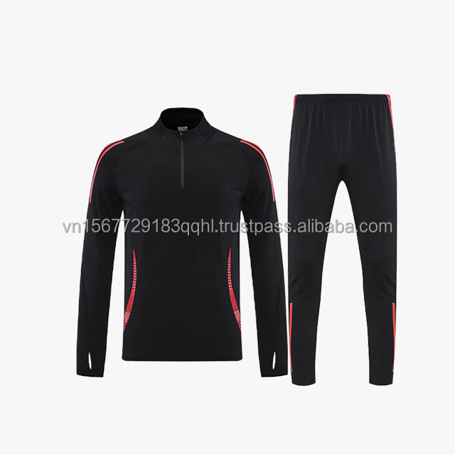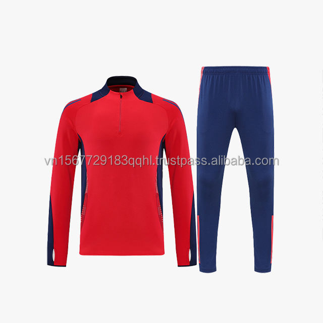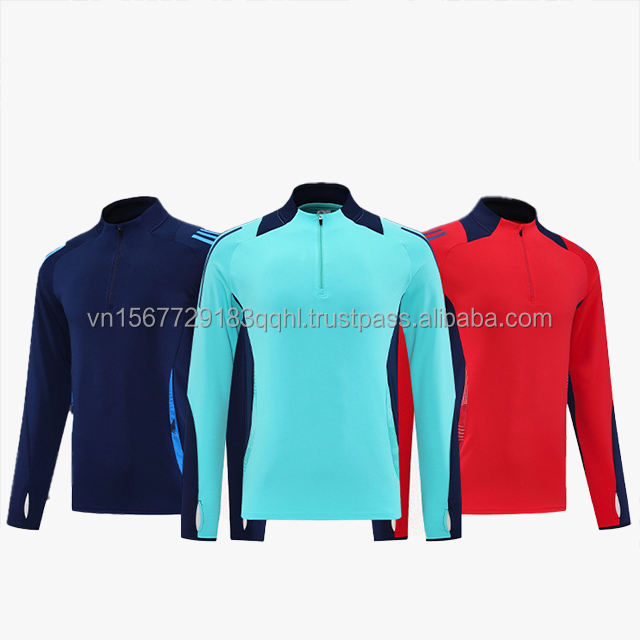 ชุดฝึกซ้อมฟุตบอลแขนยาวพิมพ์ลาย ชุดยูนิฟอร์มทีมแบบซิปครึ่งตัว 男女兼用 ปรับแต่งได้ ผลิตจากโพลีเอสเตอร์ 100% แห้งเร็ว ระบายอากาศได้ดี