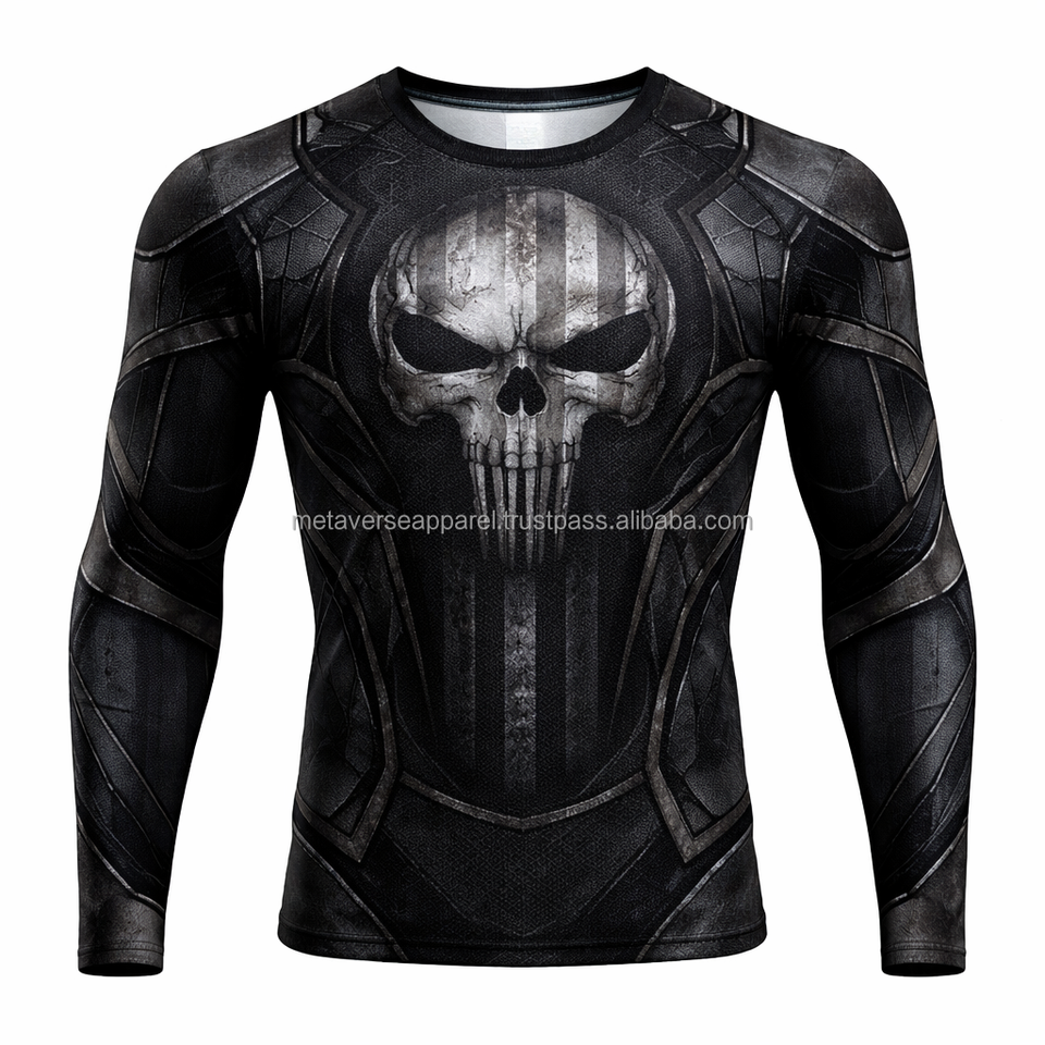 เสื้อแรชการ์ดแขนยาวรัดรูปสำหรับฝึกซ้อมมวยปล้ำ ผ้าสแปนเด็กซ์/ไนลอน แห้งเร็ว ทนทาน ตะเข็บเย็บแบบแฟลตล็อค