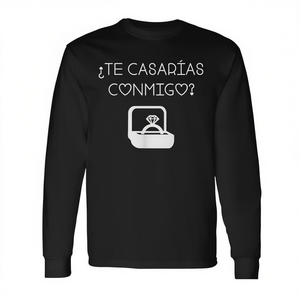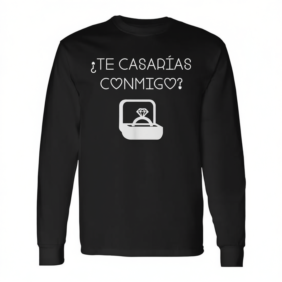 Long Sleeve Romantic Proposal T-Shirt 'Te Casarias Conmigo'-Will You Marry Me in Spanish for Promotional Use
