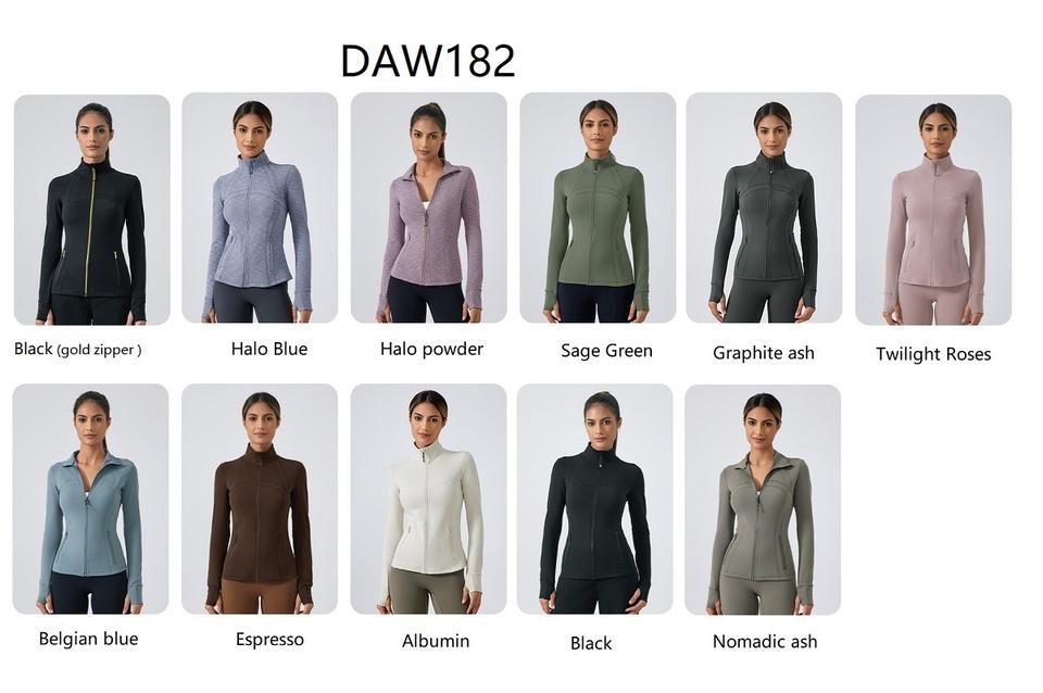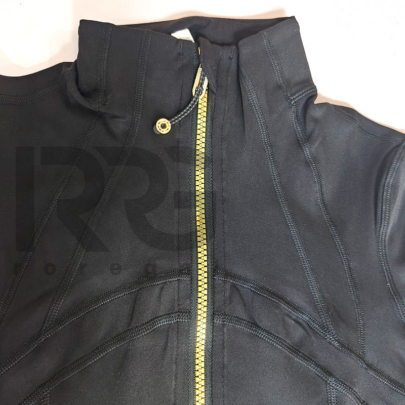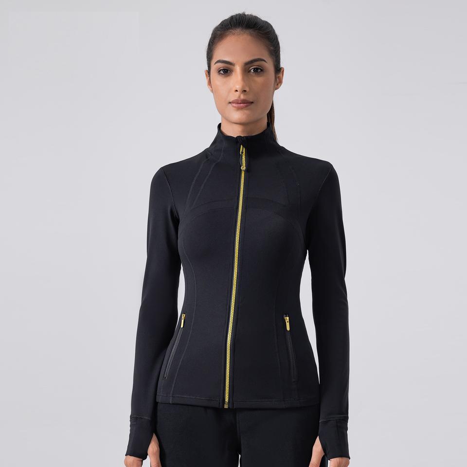 เสื้อแจ็คเก็ตออกกำลังกายโยคะผู้หญิง แขนยาว ทรงเข้ารูป คอตั้ง พร้อมซิปสีทอง