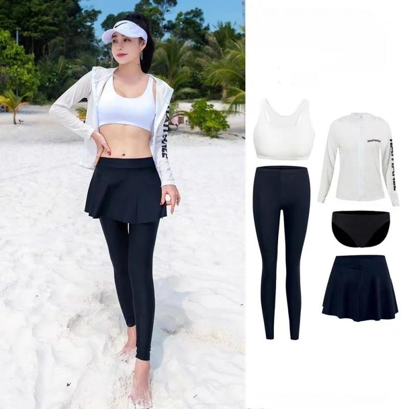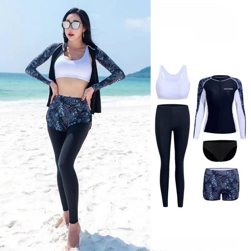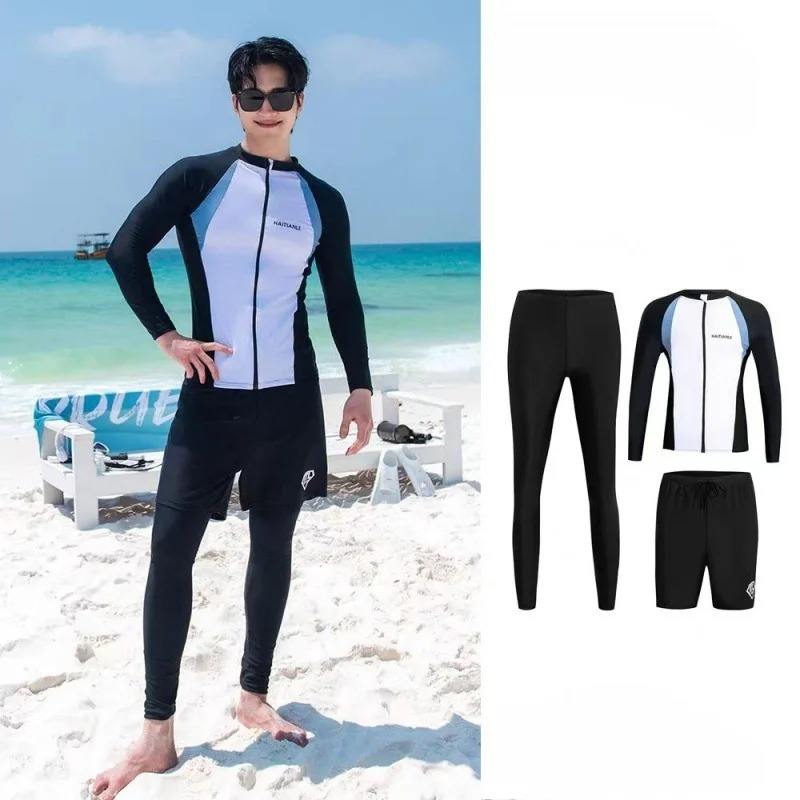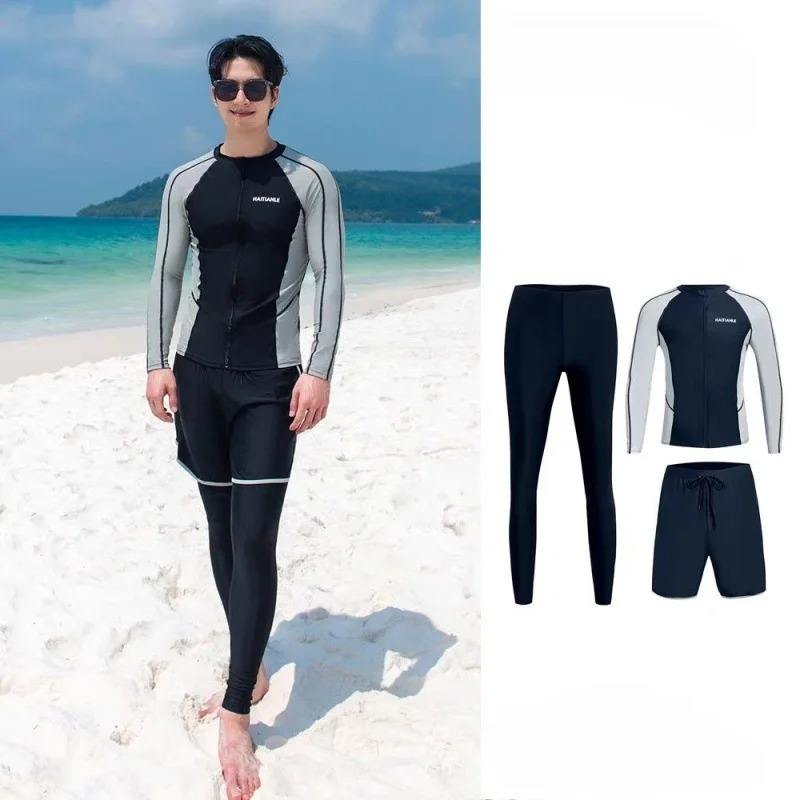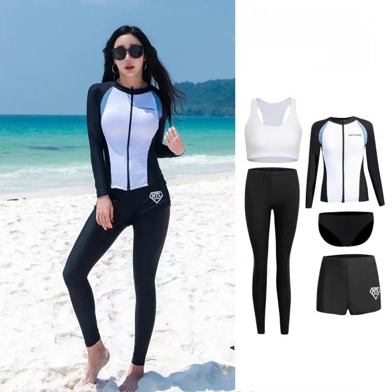 ชุดว่ายน้ำเล่นเซิร์ฟแขนยาวมีซิปชุดว่ายน้ำคู่ชุดแรชการ์ดและกางเกงขายาวสำหรับกีฬาทางน้ำ