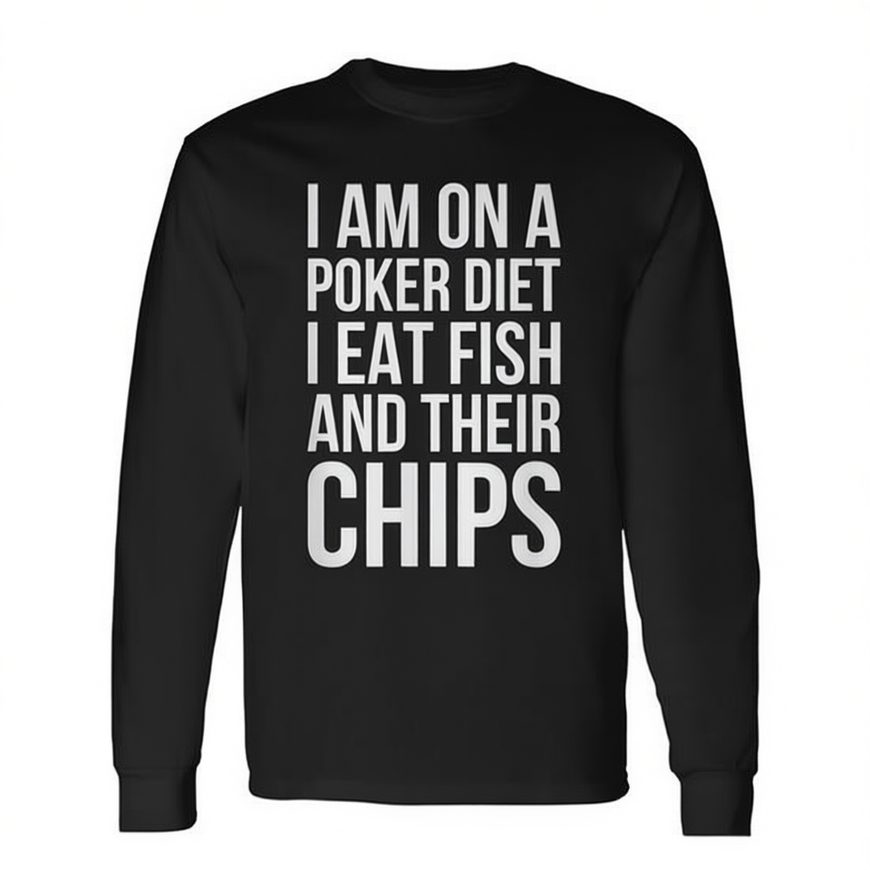 เสื้อยืดแขนยาว ฉันกำลังทำอาหารเสริมโป๊กเกอร์ ฉันกินปลาและชิปของมัน เสื้อโป๊กเกอร์พันช์