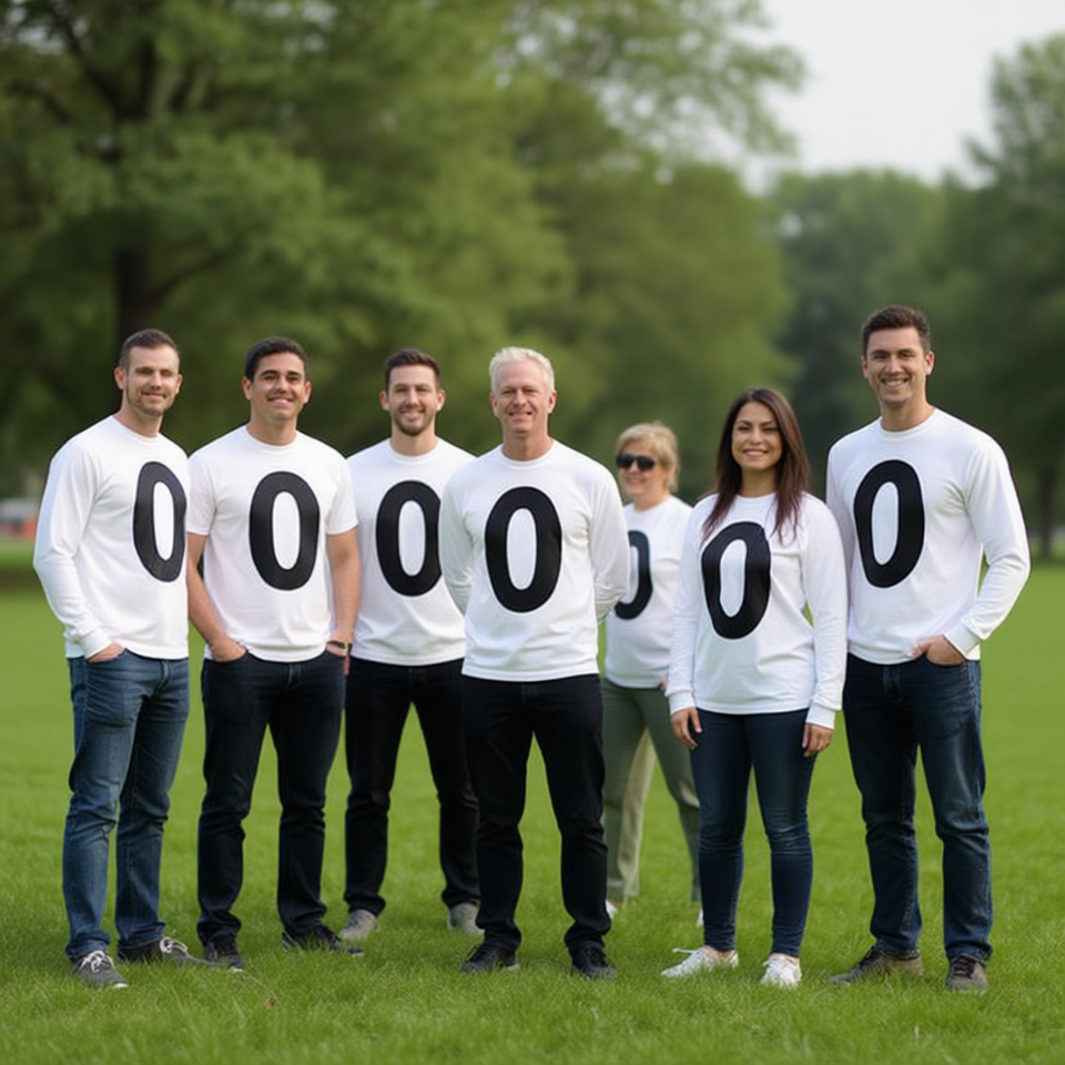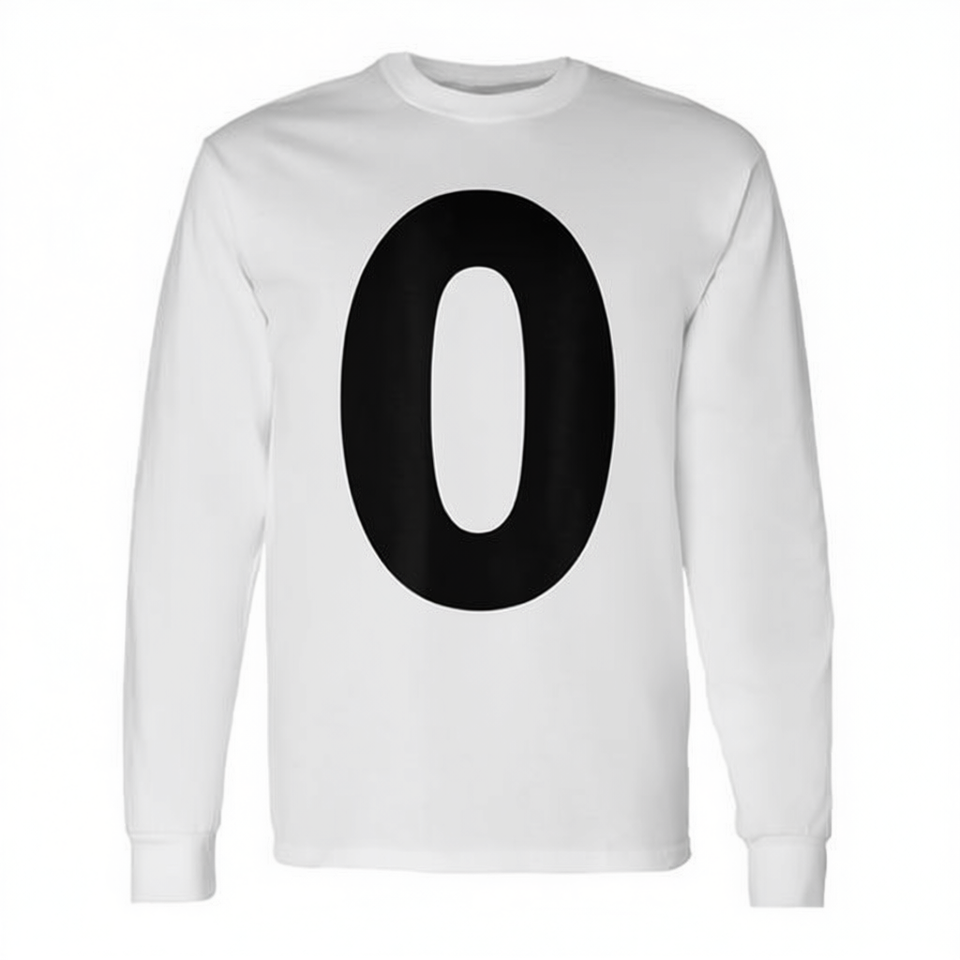 เสื้อยืดแขนยาวหมายเลข 0 ซีโร่ แมทช์ติ้งทีม กลุ่มสวมใส่ สีขาว พิมพ์ลายสีดำ
