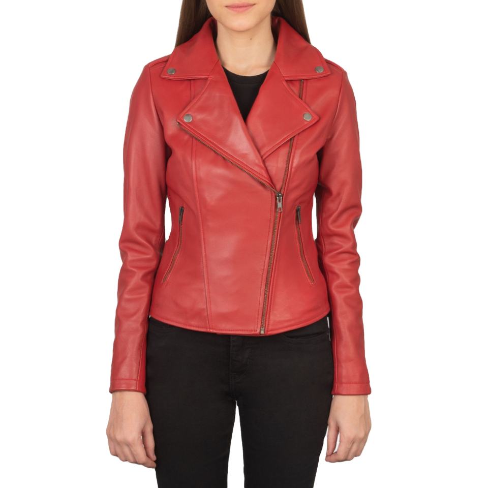 แจ็กเก็ตหนังสำหรับผู้หญิงแจ็กเก็ตหนังเฟิร์นย้อมสีแดงสำหรับฤดูหนาวแขนยาว