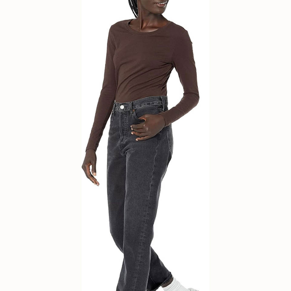เสื้อยืดสำหรับเล่นกีฬาแขนยาวของผู้หญิงเสื้อยืดเข้ารูปมีชายเสื้อออกแบบได้ตามต้องการ