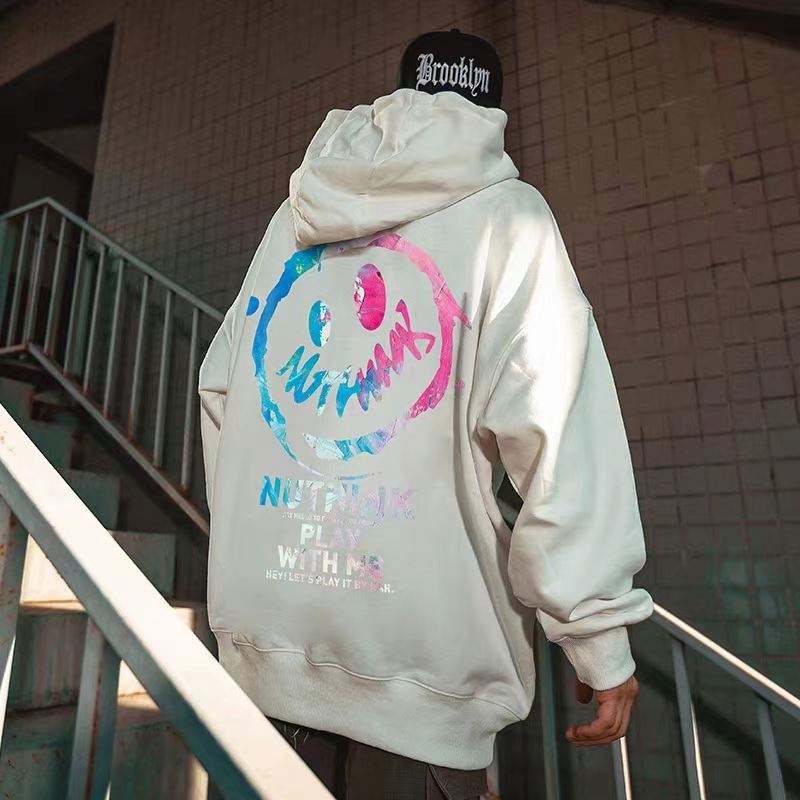 เสื้อฮู้ดแขนยาวผู้ชาย สไตล์คู่รัก ฮิปฮอป สตรีทแวร์ พิมพ์ลาย ไม่มีกระเป๋า เสื้อพูลโอเวอร์ทรงปกติ โออีดีเอ็ม