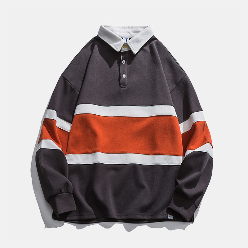 เสื้อโปโลรักบี้ผ้าฝ้าย100% แขนยาวเสื้อโปโลลายทางแบบกำหนดเอง