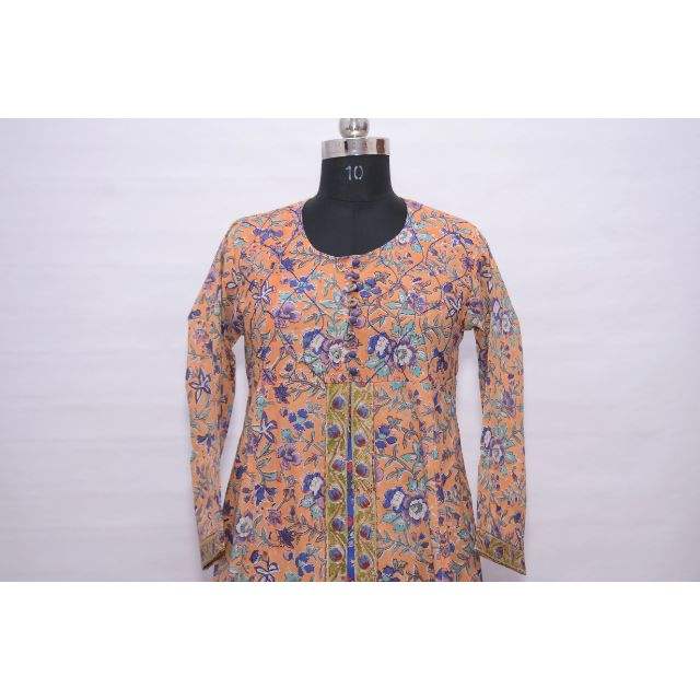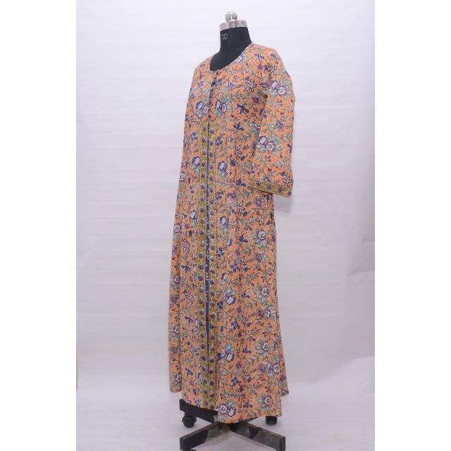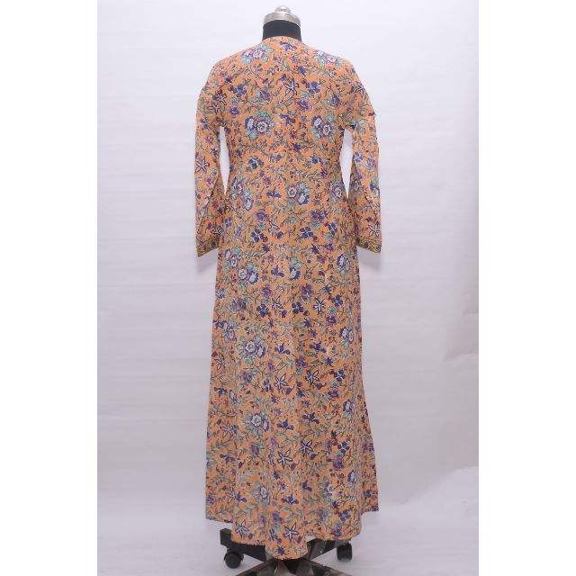 ชุดเดรสแขนยาวพิมพ์ลายทำจากผ้าฝ้ายเนื้อนุ่ม, เดรสผ้าฝ้ายทำมือสไตล์อินเดียใส่ในฤดูร้อน