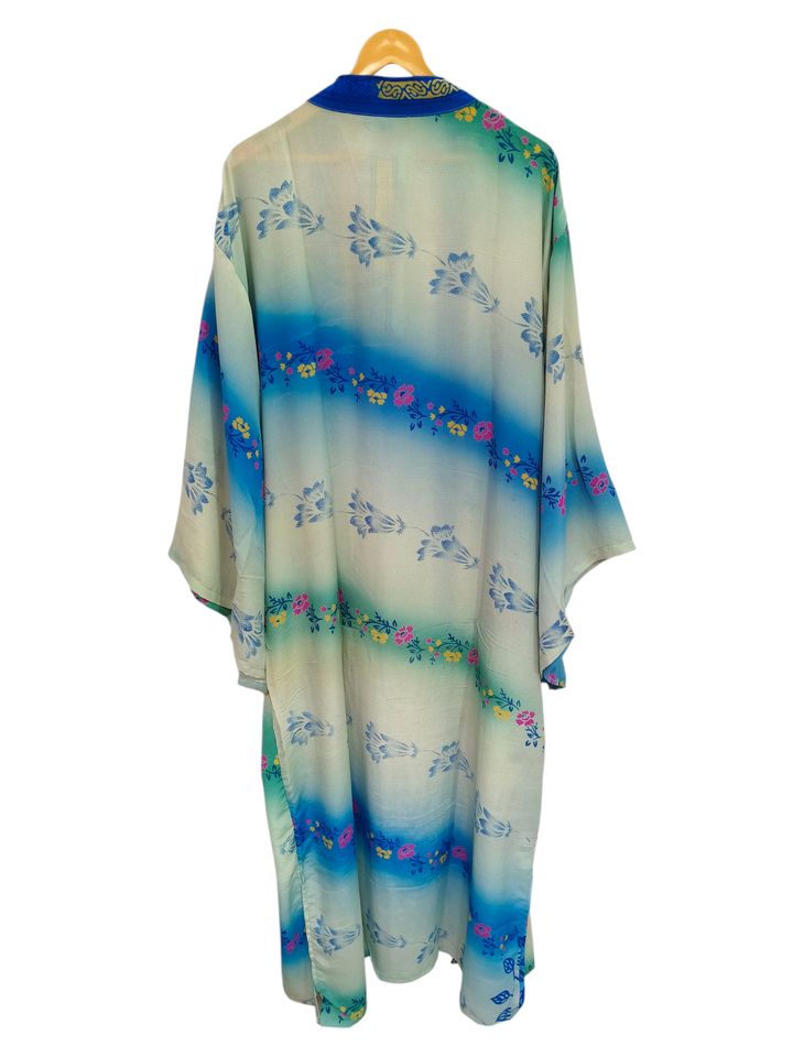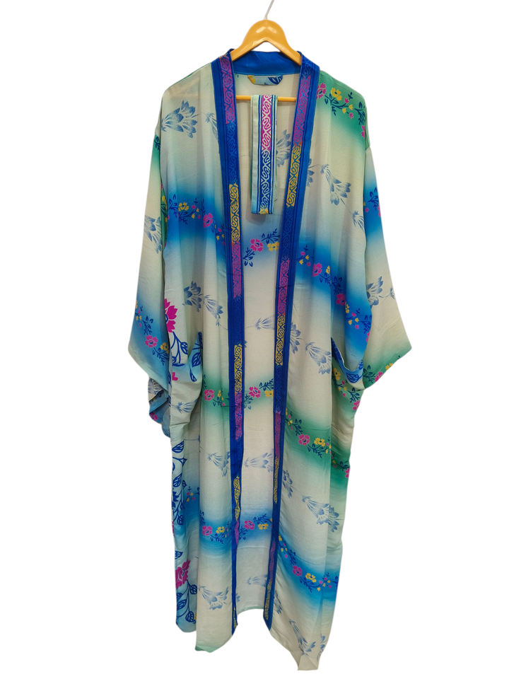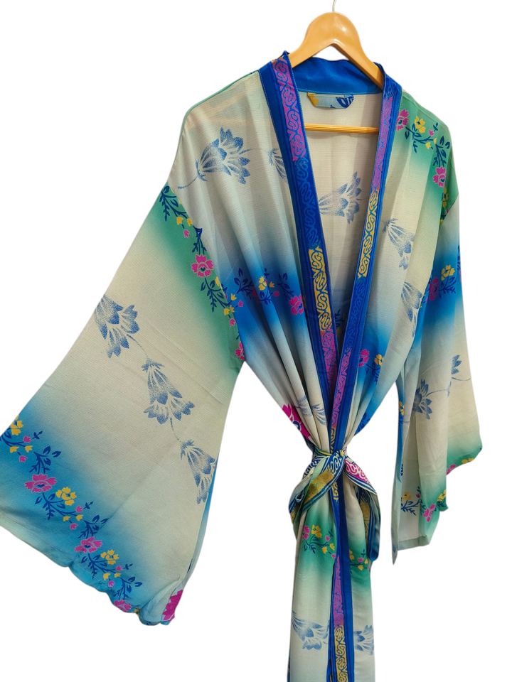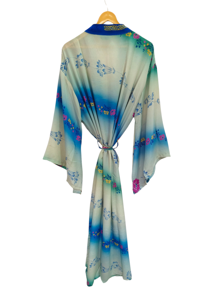 ชุดเดรสแขนยาวสำหรับใส่กลางคืนใส่ในฤดูร้อนชุดคลุมยาวทำด้วยมือจากผ้าไหมอินเดียวินเทจทำด้วยมือ