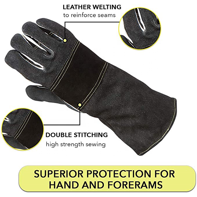 ถุงมือเตาไม้ถุงมือกันความร้อนสำหรับงานเชื่อมถุงมือย่างบาร์บีคิว