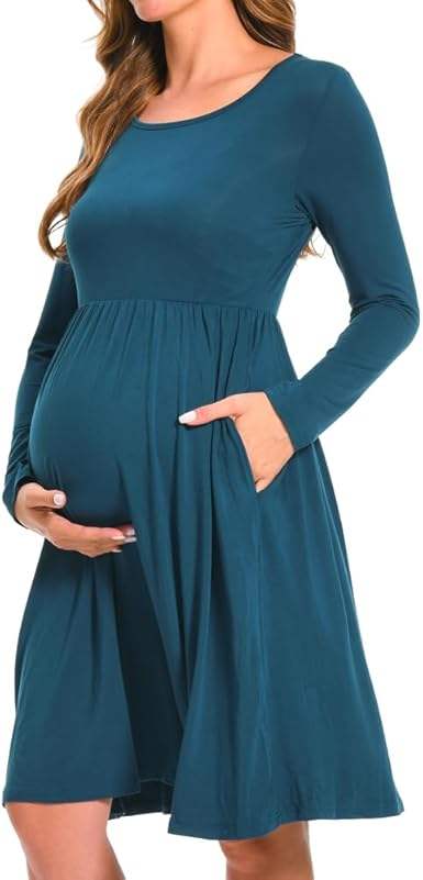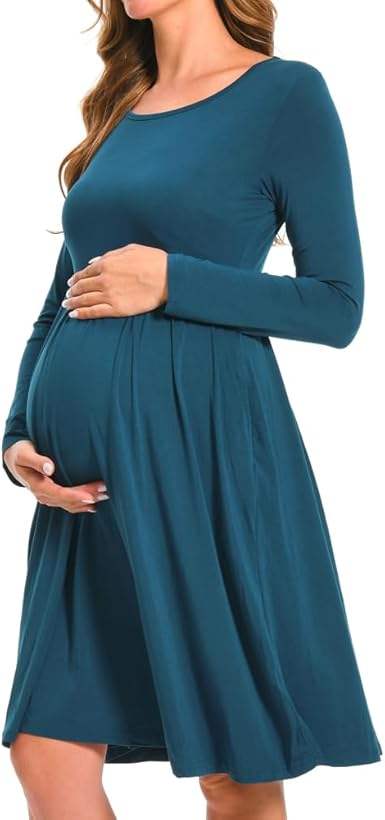 เสื้อคลุมท้องแขนยาวสีพื้น ชุดคลุมท้องสำหรับหญิงตั้งครรภ์ เสื้อผ้าสำหรับคุณแม่ตั้งครรภ์ ผ้าฝ้าย 100% ระบายอากาศได้ดี ลายพิมพ์สวยงาม