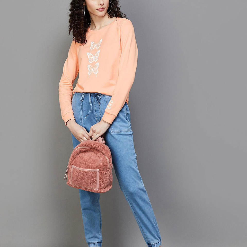 เสื้อสเวตเชิ้ตแขนยาวผ้าเทอร์รี่สำหรับผู้หญิง ฤดูหนาว ผ้าฝ้าย 100% โลโก้ด้านหน้า ทรงโอเวอร์ไซส์