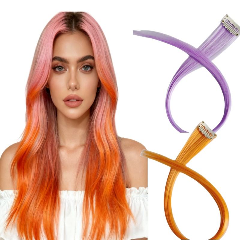 ที่หนีบผมสังเคราะห์ยาวตรงต่อผมสีเขียวน้ำเงินชมพูมีหูแขวนไฮไลต์ผมสำหรับเด็กผู้หญิง