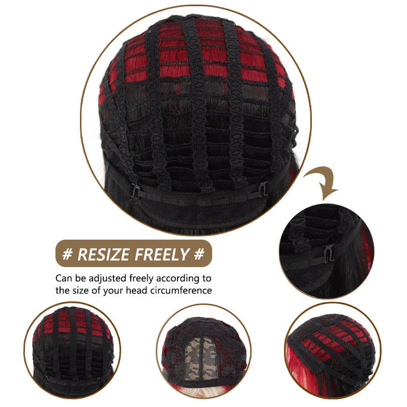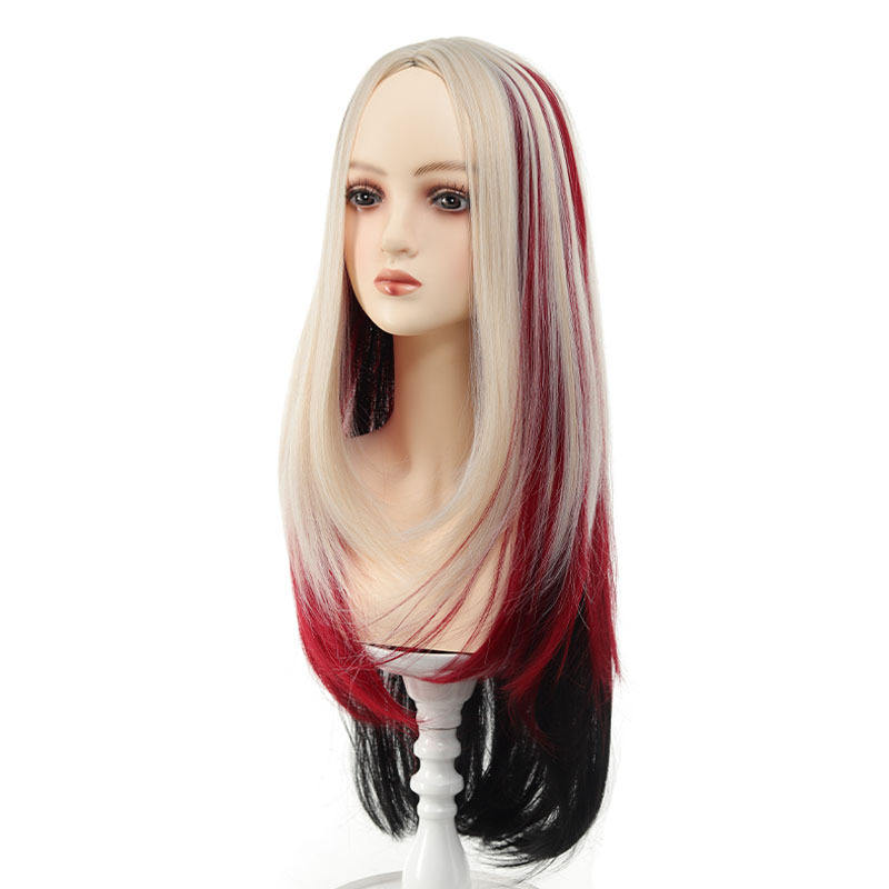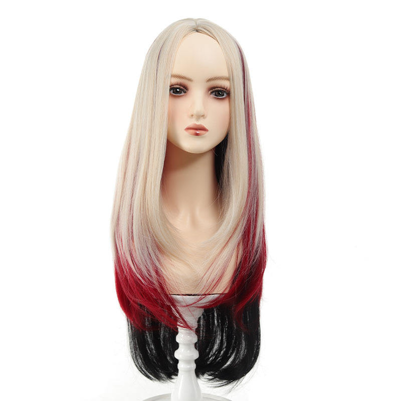 วิกผมยาวตรงพร้อมหน้าม้าปัดข้าง สีไล่ระดับ เส้นผมธรรมชาติ ใยคาเนคาลอน วิกผมเต็มศีรษะสำหรับผู้หญิง