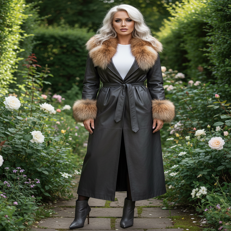 เสื้อโค้ทหนังปลาแบบยาวพร้อมขนสุนัขจิ้งจอกและซับในผ้าไหม ขายส่งเสื้อโค้ทเทรนช์ผู้หญิงแบบสั่งทำ