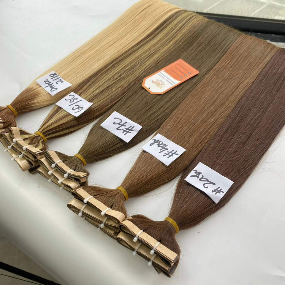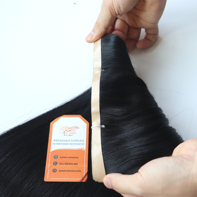 เทปยาวขายส่งราคาที่ยังไม่ได้บริสุทธิ์นามสกุลผมมนุษย์ดิบผมเทปยาวในนามสกุลผมมนุษย์อัจฉริยะผ้า
