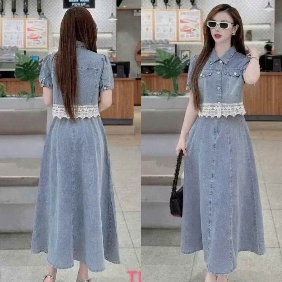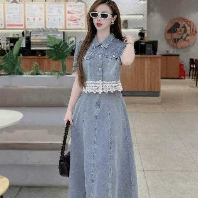ชุดยีนส์สองชิ้นแบบยาวสำหรับผู้หญิง เสื้อผ้าแฟชั่นสบายๆ ธรรมชาติ ซักได้ บรรจุภัณฑ์แบบกำหนดเองจากผู้ผลิตในเวียดนาม