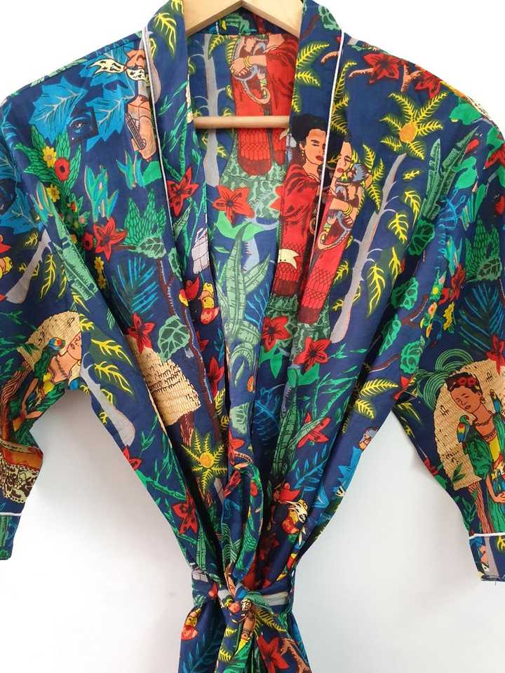 ชุดเดรสยาวสไตล์วินเทจพิมพ์ลายดอกไม้สไตล์วินเทจทรงหลวมใส่สบายสำหรับผู้หญิงชุดเดรสกิโมโน Maxi พร้อมสายคาดเอวธรรมชาติ
