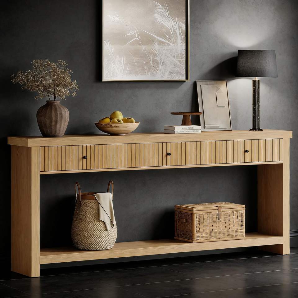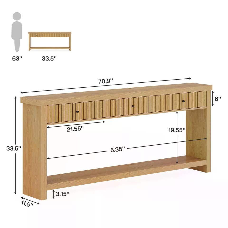 โต๊ะคอนโซลไม้ยาวพร้อมลิ้นชัก 3 ช่องสำหรับวางโซฟา