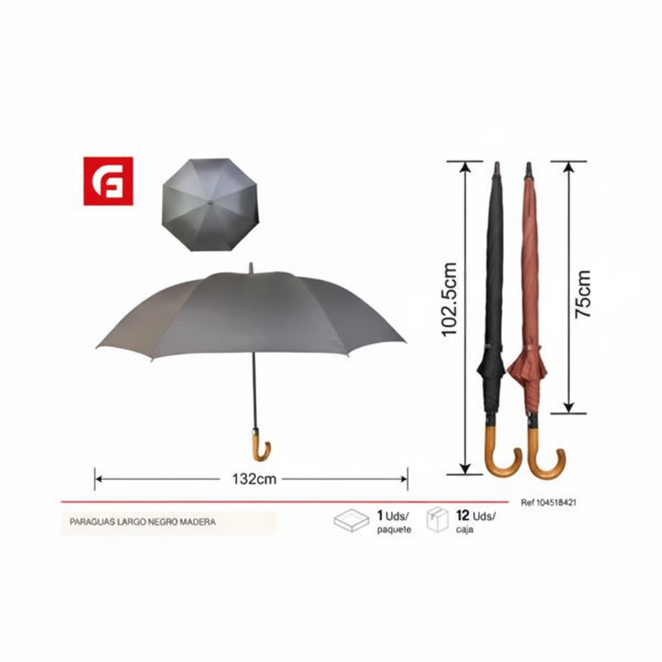 ร่มสีดำยาวพร้อมเกียร์ฝนไม้