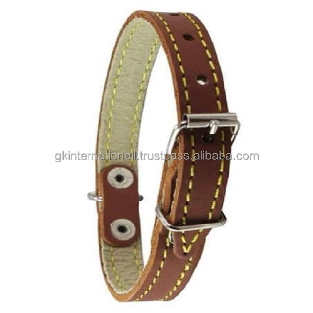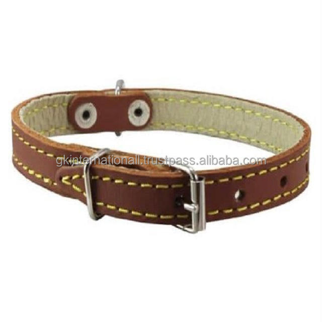 ปลอกคอสุนัขบุนวมหนังแท้เย็บ100% แข็งแรงทนทานทนทานพร้อมอุปกรณ์สแตนเลสสตีลนิกเกิล