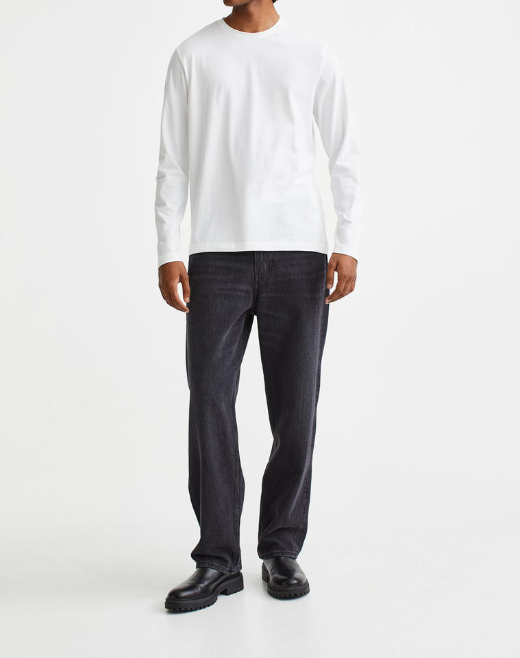 เสื้อยืดแขนยาวผู้ชาย ผ้าฝ้าย 100% ทรงโอเวอร์ไซส์ หนัก 350 GSM สีเทาล้วน ระบายอากาศได้ดี ทรงไหล่ตก สไตล์สตรีทแวร์