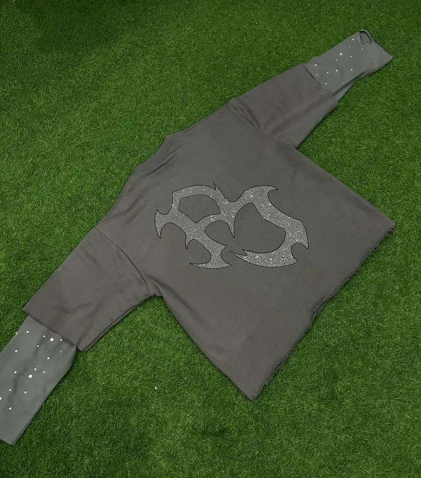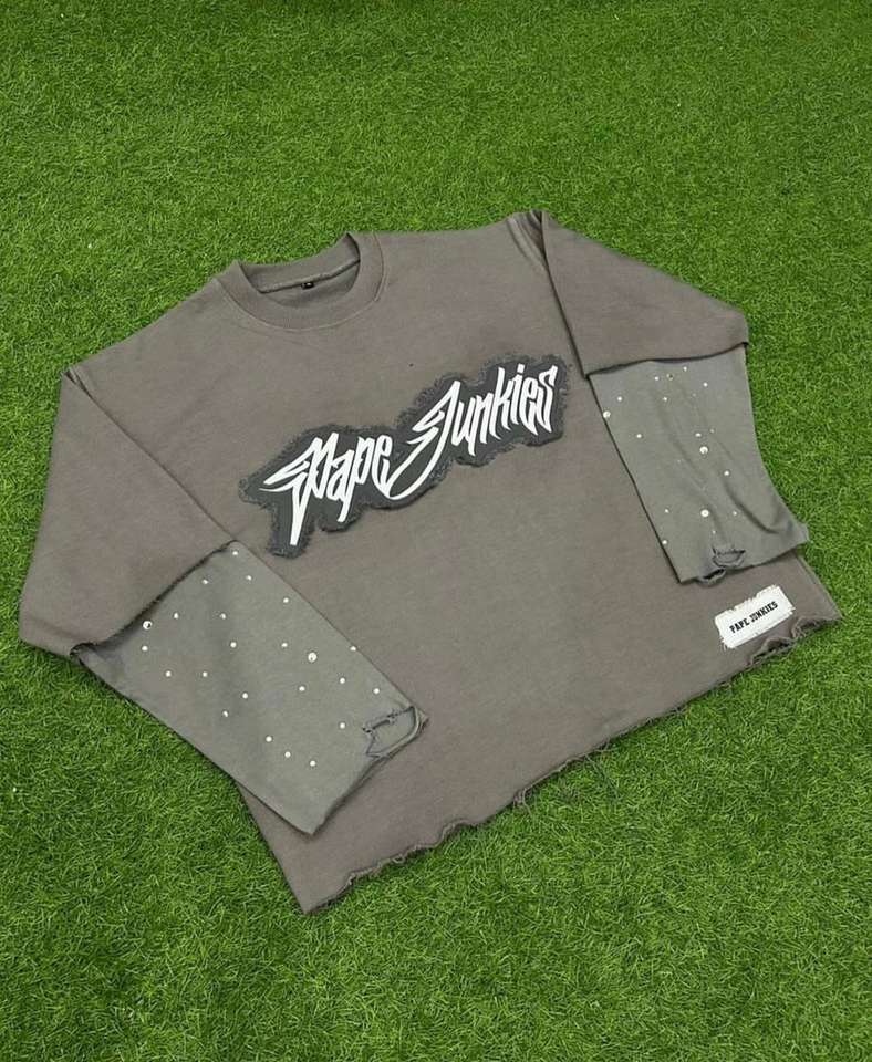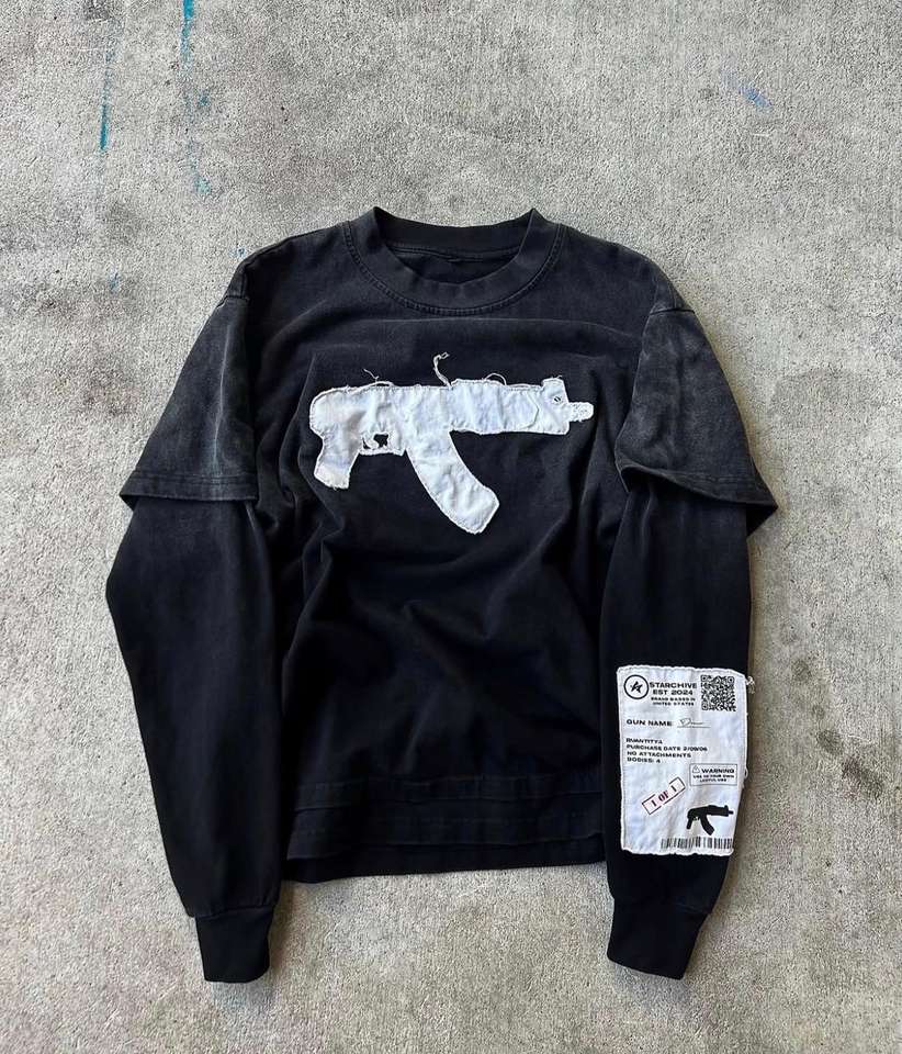 เสื้อแขนยาวสองชั้นขายส่ง เสื้อยูนิเซ็กส์แบบทำเก่า เสื้อปักลายเพชร เสื้อยืดสองชั้นคุณภาพดีที่สุด