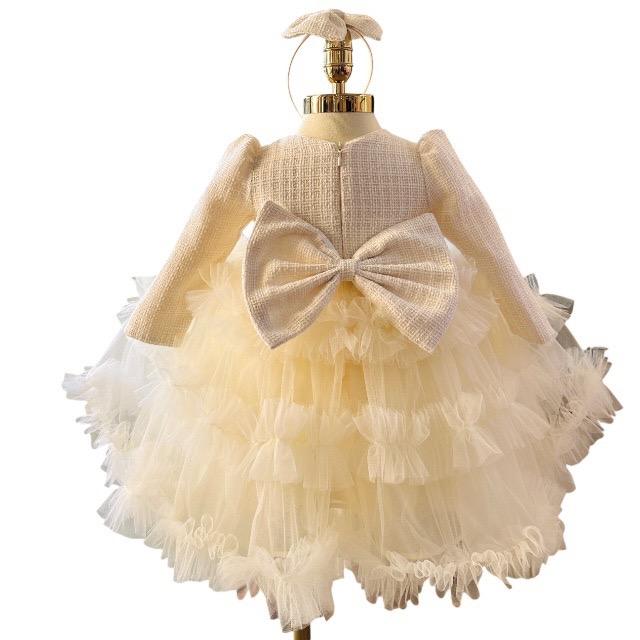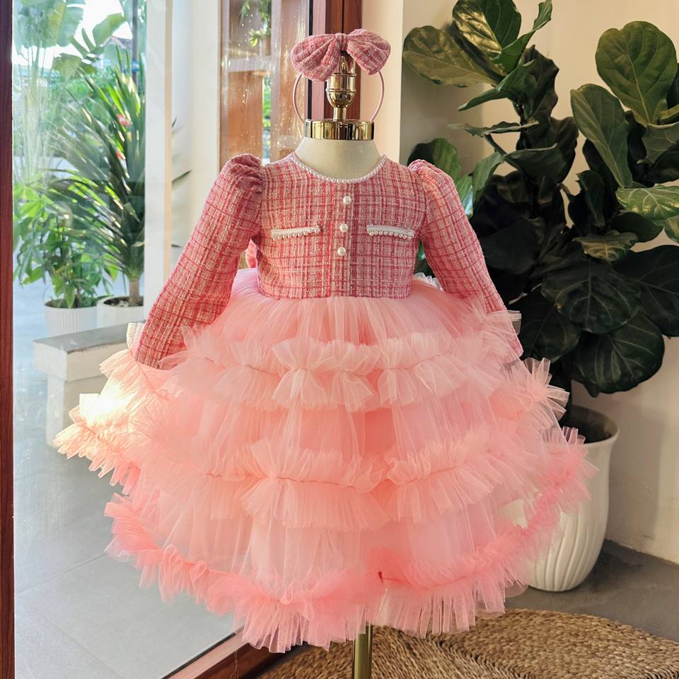 กระโปรงตาข่ายบานแขนยาวสำหรับเด็ก, กระโปรงผ้าทูลเนื้อนุ่มอบอุ่นน่ารักฤดูใบไม้ผลิฤดูหนาวจากเวียดนาม