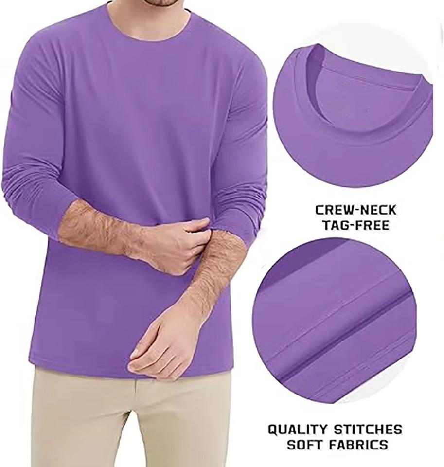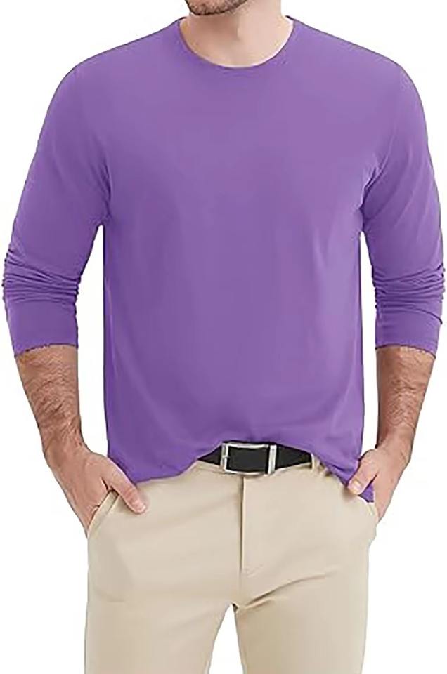 เสื้อเชิ้ตแขนยาวสีม่วงเข้มสำหรับผู้ชาย ระบายอากาศได้ดี ไซส์ใหญ่ ผ้าคุณภาพสูง เสื้อยืดคอกลมผู้ชาย ผ้าฝ้าย 100%
