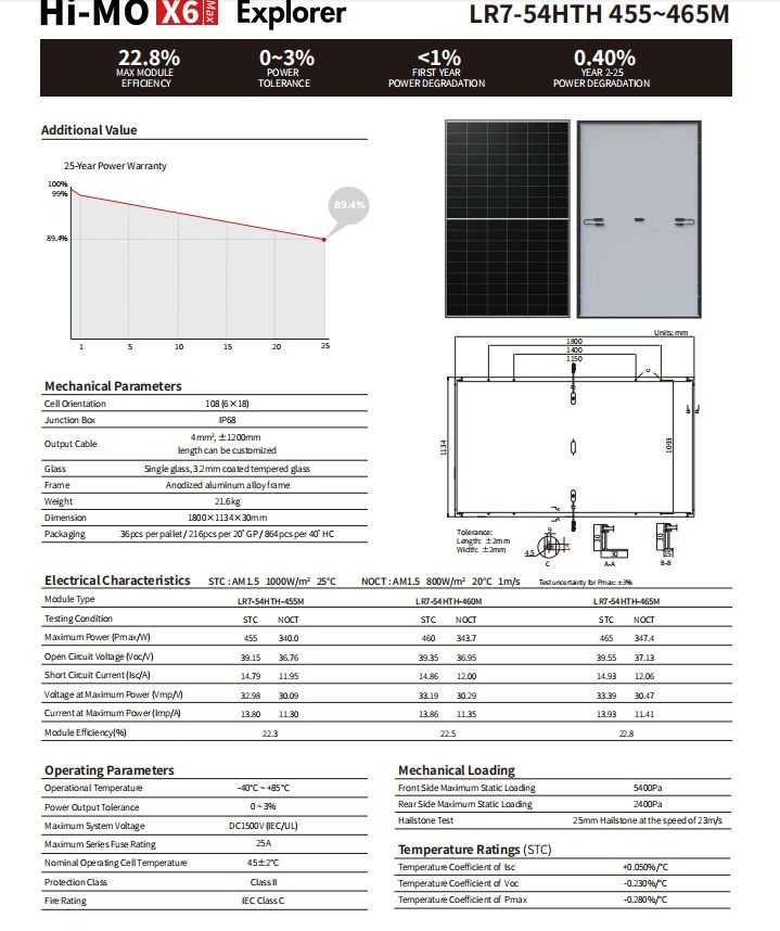 หมายเลขรุ่น:Hi-MOX6 LR7-54HTHF 455~475M