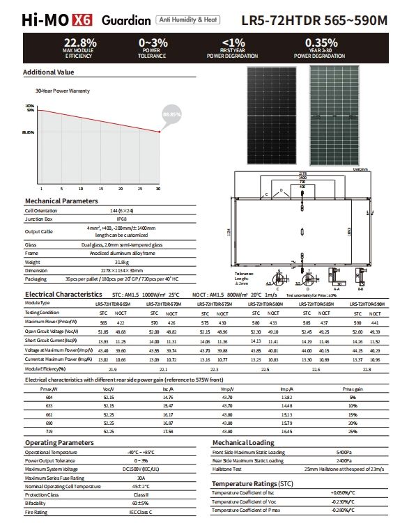 หมายเลขรุ่น:Hi-MOX6 LR5-72HTDR 565~590M
