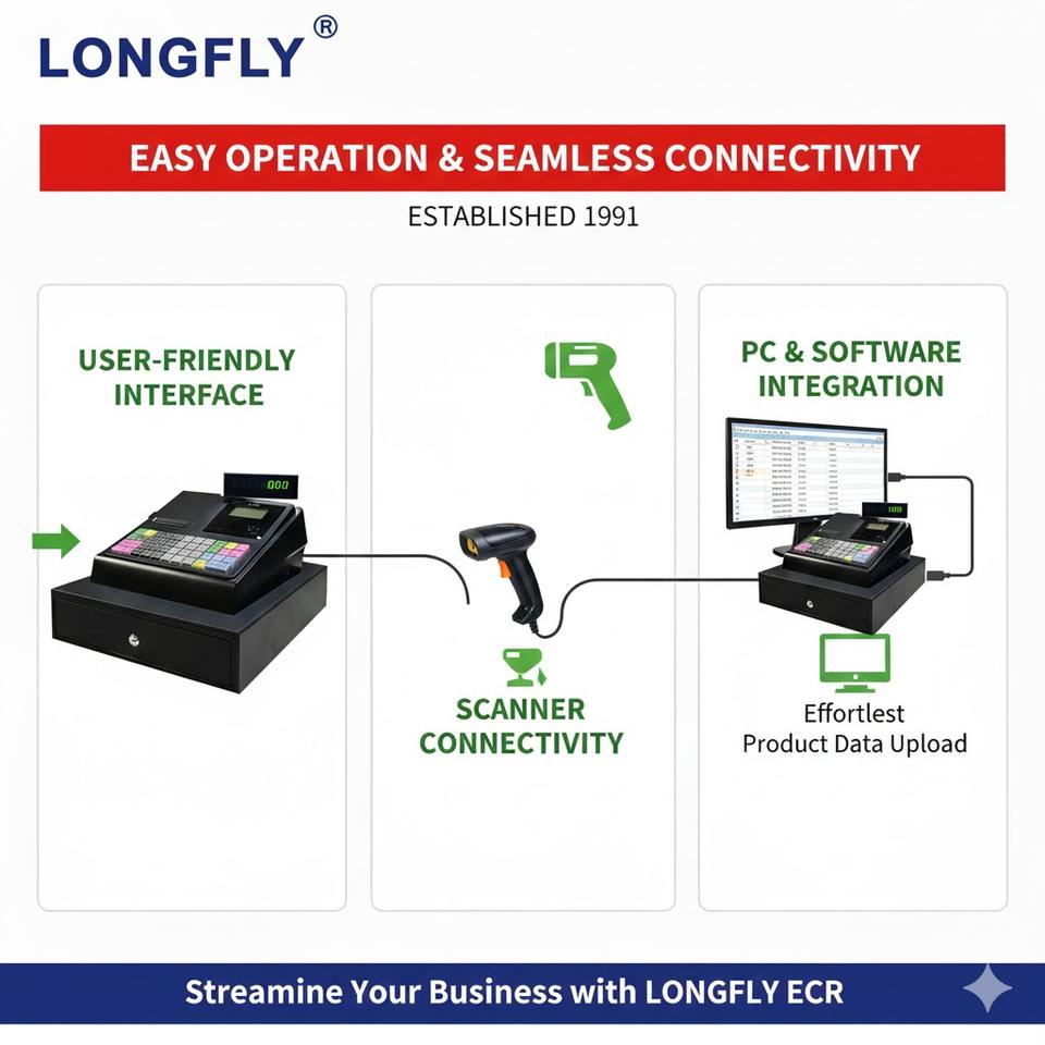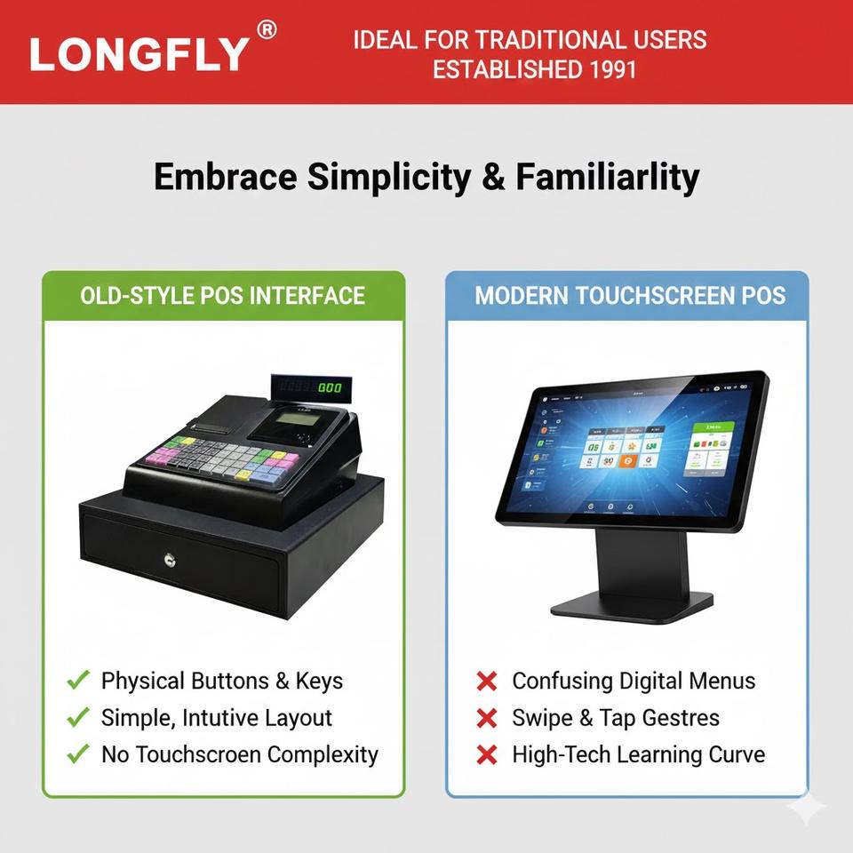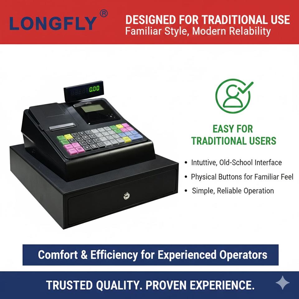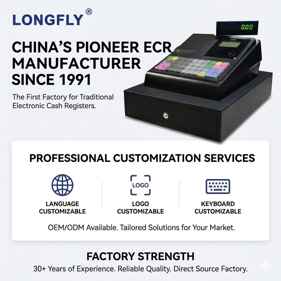 เครื่องบันทึกเงินสด LongFly ราคาประหยัด ระบบ POS รุ่นเก่าสำหรับขาย เครื่อง POS 48 ปุ่ม สำหรับธุรกิจขนาดเล็ก 50 แผนกและพนักงาน