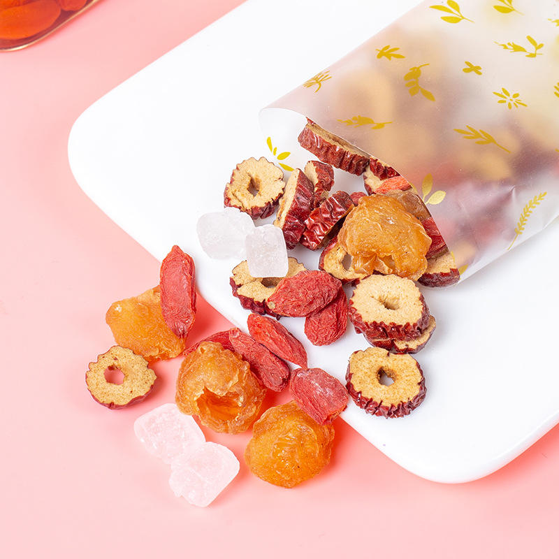 ส่วนผสม:น้ำตาลทรายแดง, ถั่วลิสง, พุทราแดง, ถั่วแดง, เก๋ากี้