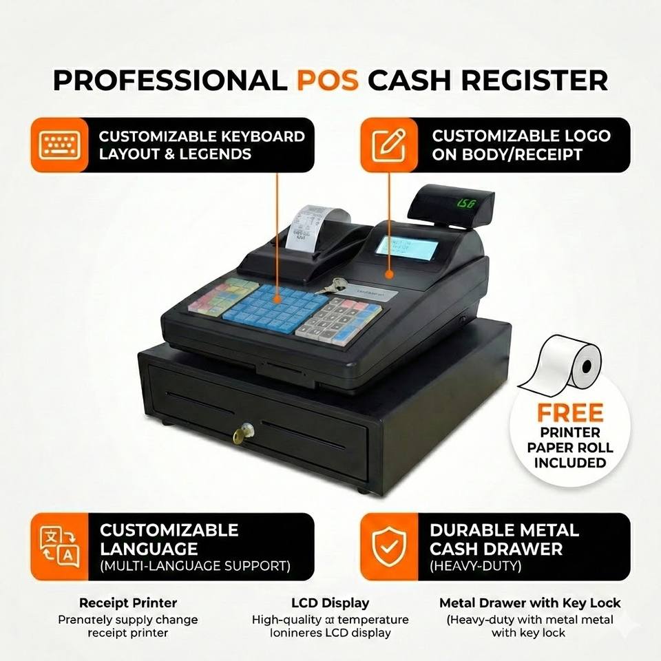 เครื่องบันทึกเงินสดอิเล็กทรอนิกส์ Longfly รุ่นเก่า ระบบ POS รุ่นเก่าสำหรับขาย 64 ปุ่ม จอ LCD ฮาร์ดแวร์ POS Epos TPV