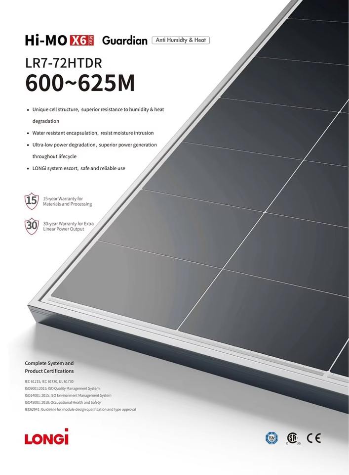 Longi แผงโซลาร์ X6กันฝุ่น, LR7-72HTDR ป้องกันฝุ่น600W 605W 610W 615W 620W 625W ประสิทธิภาพสูง
