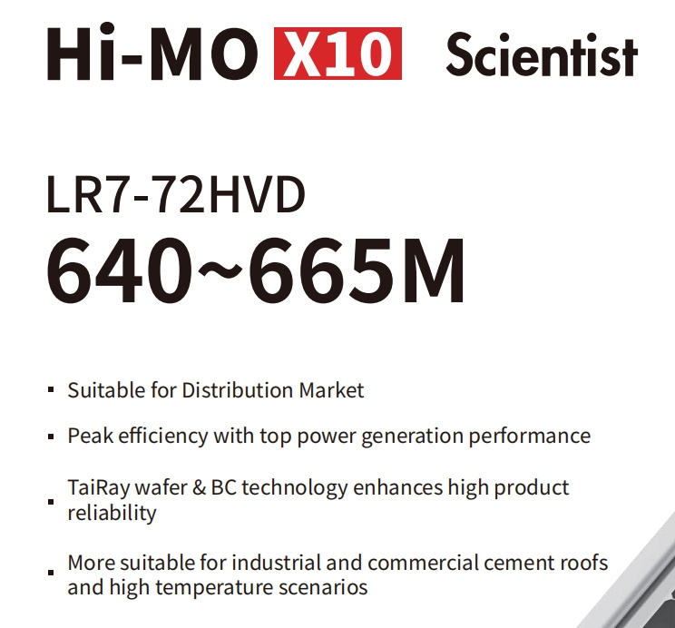 แผงโซลาร์เซลล์ Longi Hi-Mo X10 Scientist LR7-72HVD แบบสองหน้า กระจกสองชั้น โมโนคริสตัลไลน์ สำหรับใช้ในเชิงพาณิชย์และที่อยู่อาศัย กำลังไฟ 640W 650W 655W 660W 665W