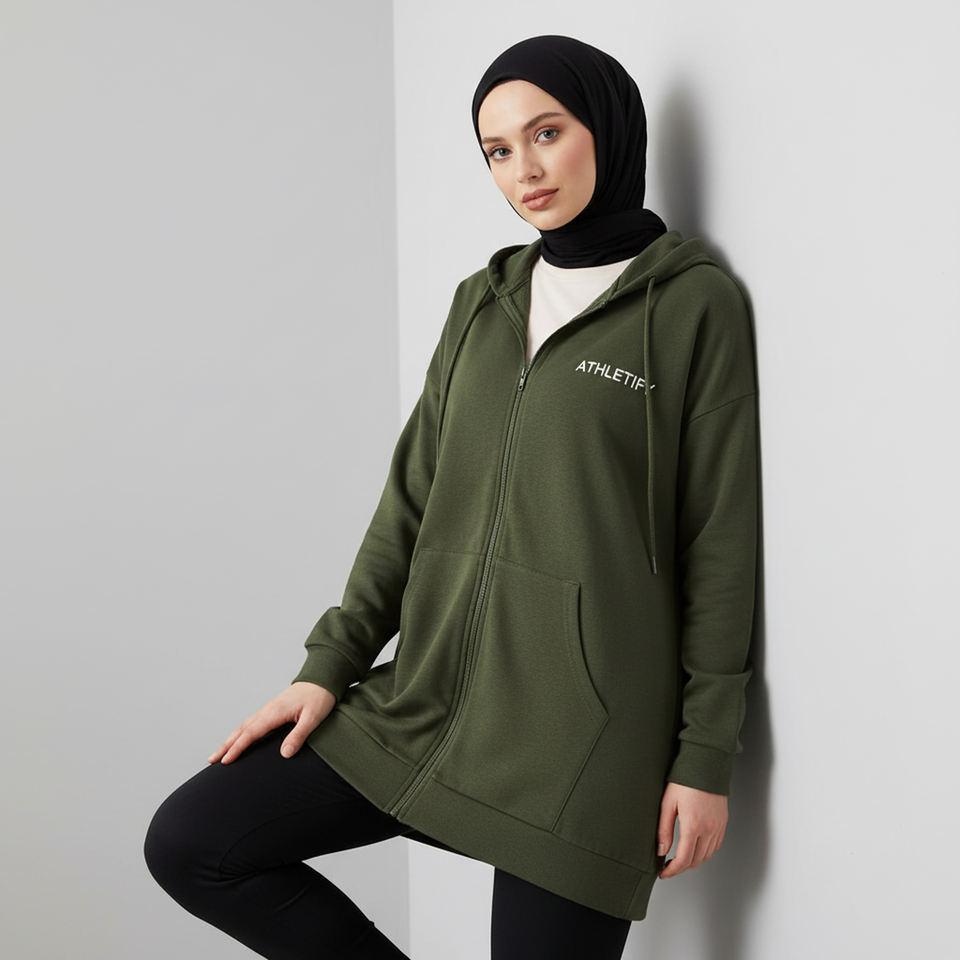 เสื้อฮู้ดมีซิปยาวสไตล์มุสลิมสำหรับผู้หญิง