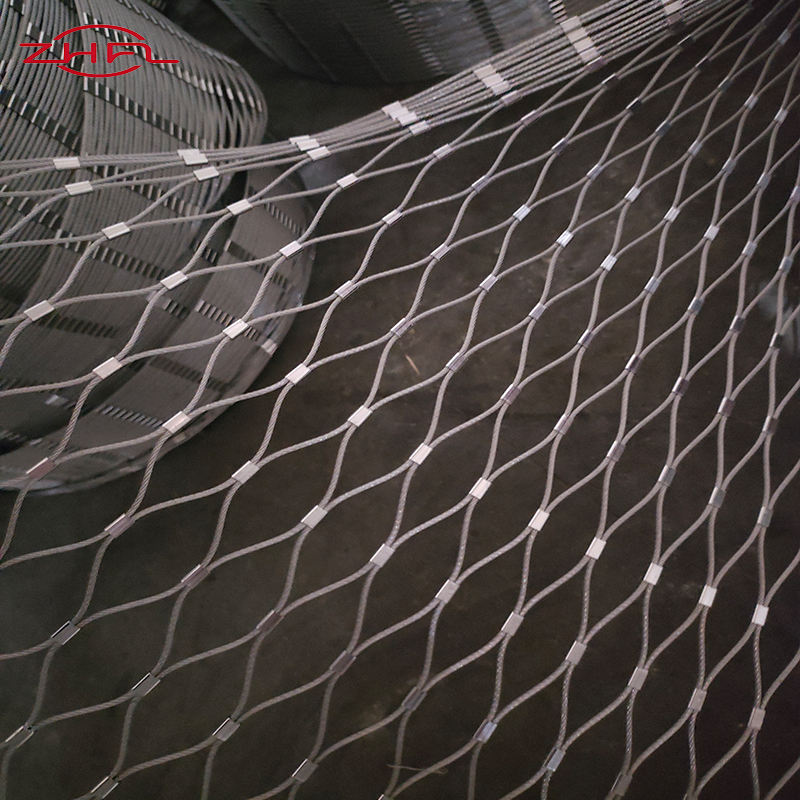 ตาข่ายลวดสลิงแบบยืดหยุ่น เกรด LT_STRM SS 304 316 สีดำออกไซด์ แบบถักธรรมดา สำหรับรั้วป้องกันสวนสัตว์