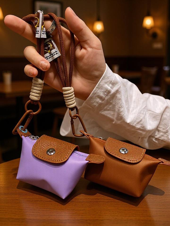 กระเป๋าใส่เหรียญอเนกประสงค์สไตล์เรโทร ทำจากไนลอน สีแดงลิปสติก พร้อมพวงกุญแจหนัง