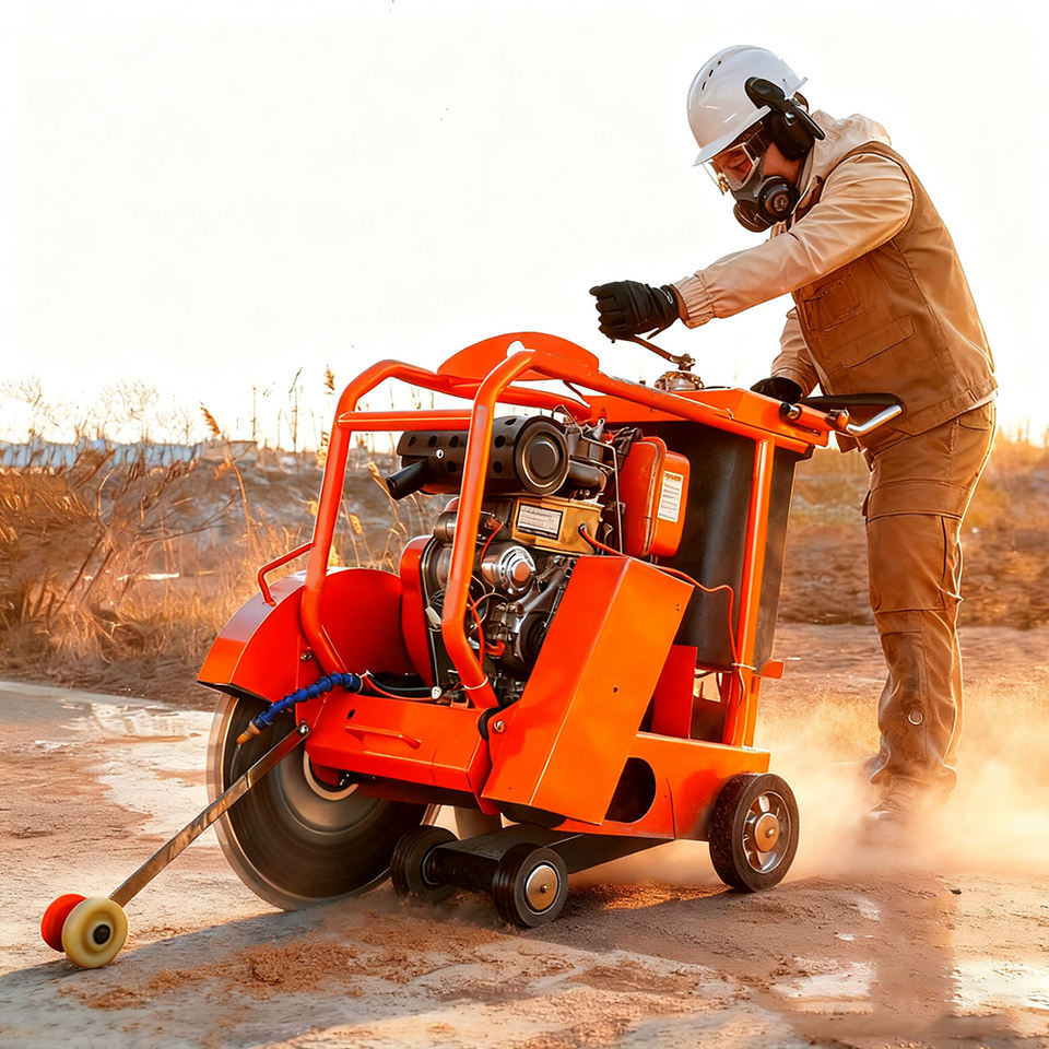 เครื่องตัดพื้นคอนกรีตและแอสฟัลต์แบบมือถือ Lonsen เครื่องยนต์ดีเซล 15 แรงม้า รัศมีการเลี้ยวสั้น 350-500 มม. ใบมีด 180 มม.