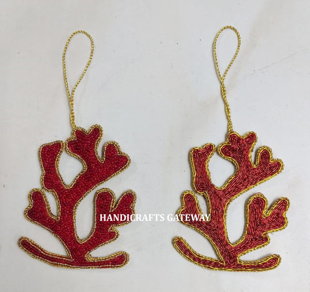 เครื่องประดับปักลาย zari สีทองสำหรับเทศกาลคริสต์มาสสินค้าแขวนตกแต่งรูปทรงต้นไม้ตามสั่ง