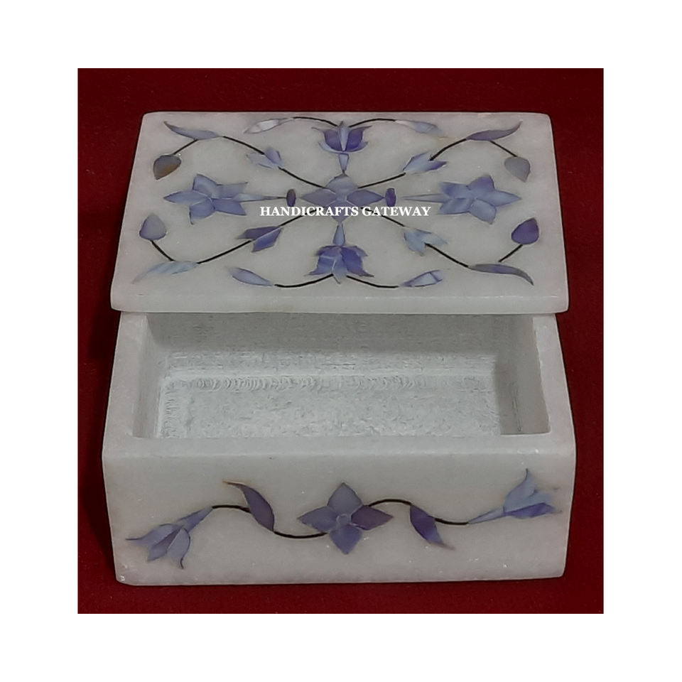 ดูงดงามมากหินอ่อนสีขาวที่มีสี่เหลี่ยมผืนผ้าเสร็จดีแม่ของมุกฝังเครื่องประดับกล่องสำหรับงานแต่งงานและธุรกิจ