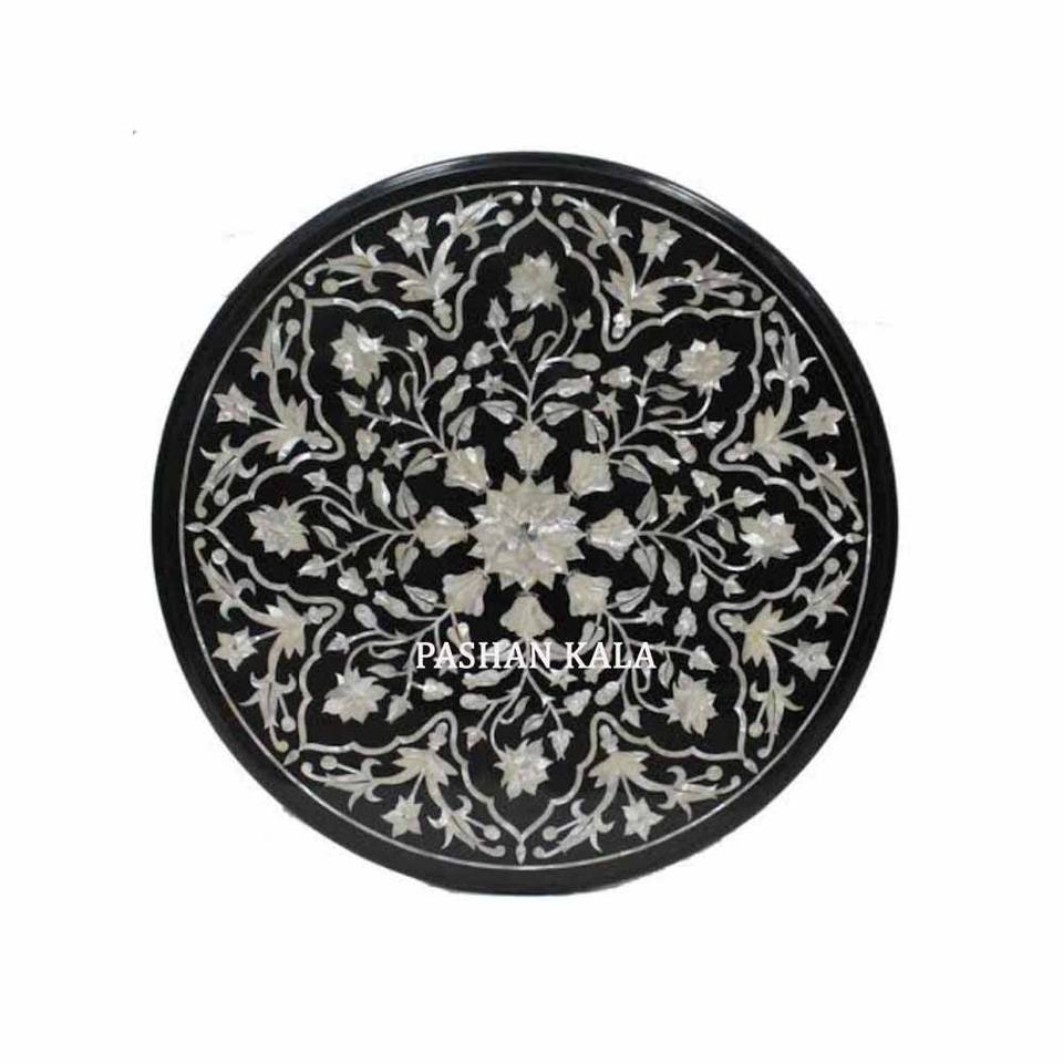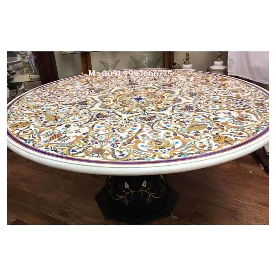 โต๊ะหินอ่อนสีขาวสวยงาม งานฝีมือประณีต ตกแต่งลายดอกไม้ รูปทรงกลม เหมาะสำหรับร้านอาหารและโรงแรม