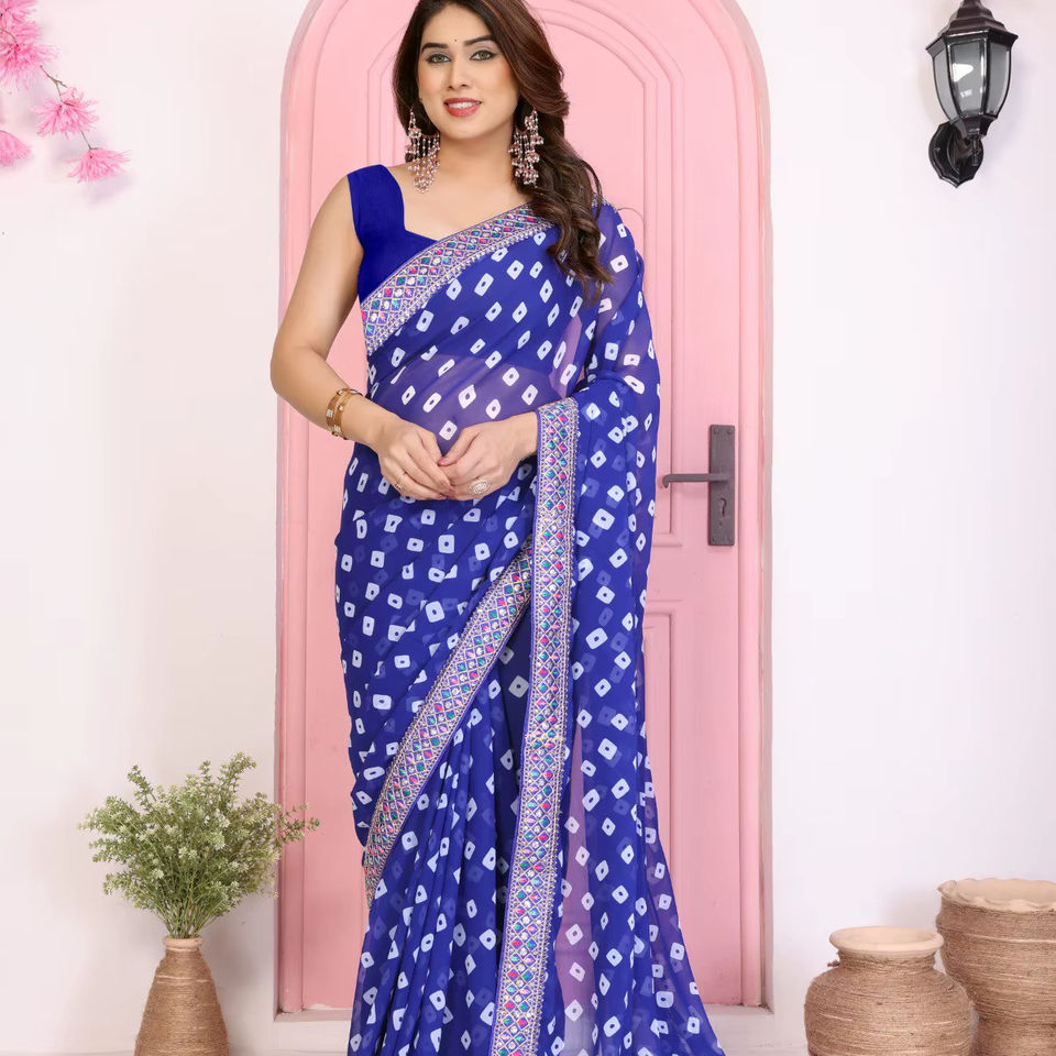 Looking some one for this same colour beautiful Saree for wedding on premium Soft Georgette fabric with bandhej print
