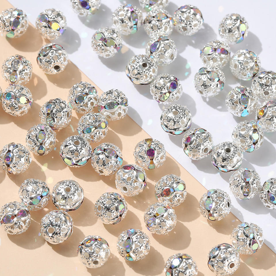 ชุดลูกปัดเพชรสีเงินขนาด6มม./8มม. สำหรับงานประดิษฐ์ทำลูกปัดดอกไม้ลายฉลุแบบทำมือ