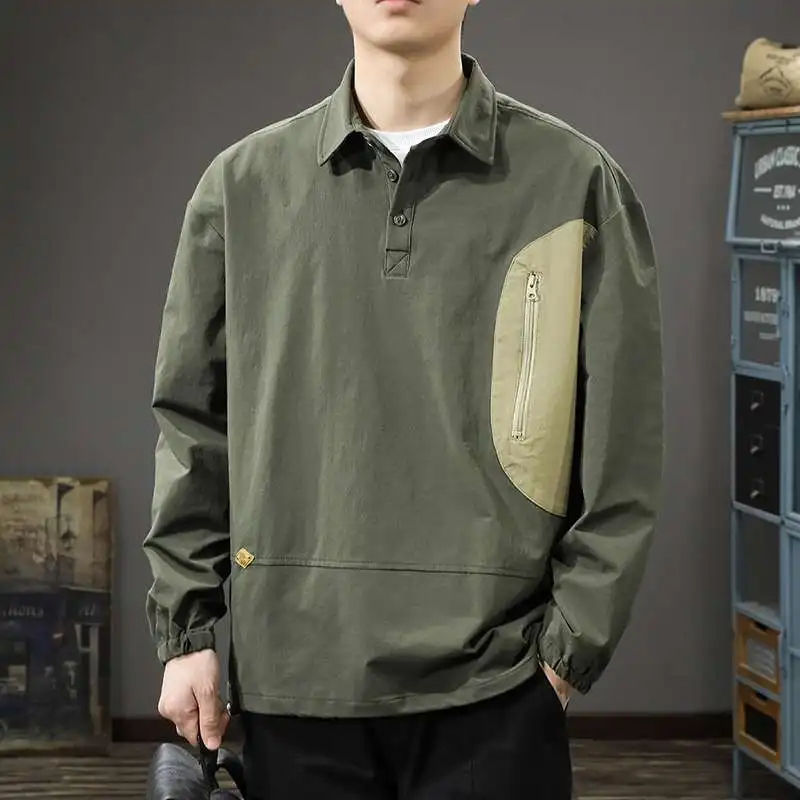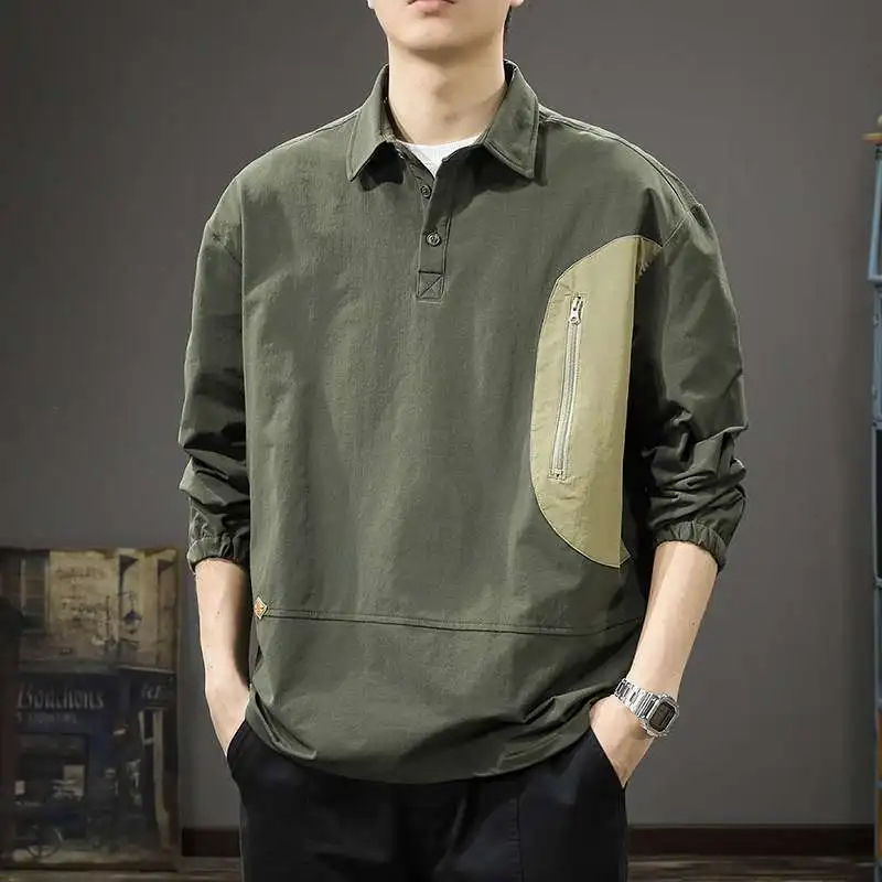 เสื้อโปโลแฟชั่นสตรีทสไตล์หลวมๆ ไซส์ใหญ่ สำหรับฤดูใบไม้ผลิ ใส่เที่ยวกลางแจ้ง คอปก แขนยาว ผู้ชาย สไตล์ลำลอง เก๋ๆ แบบเกาหลี