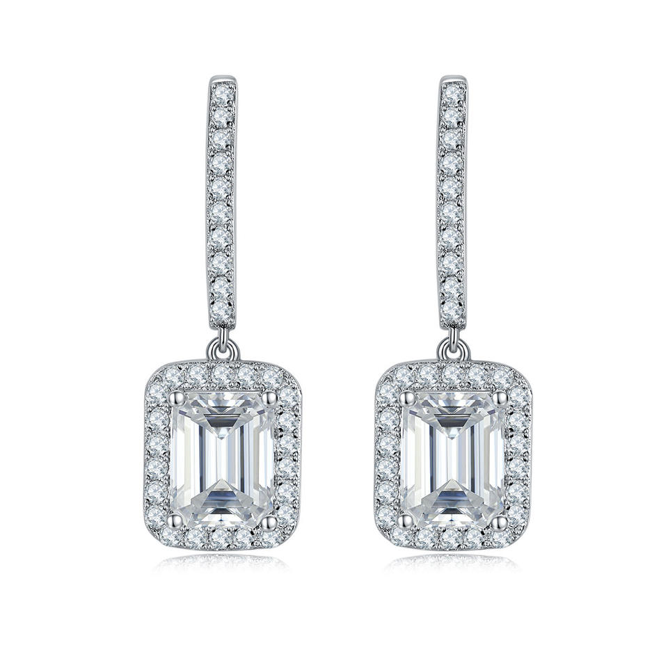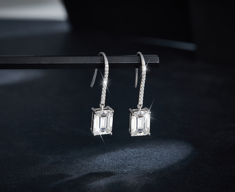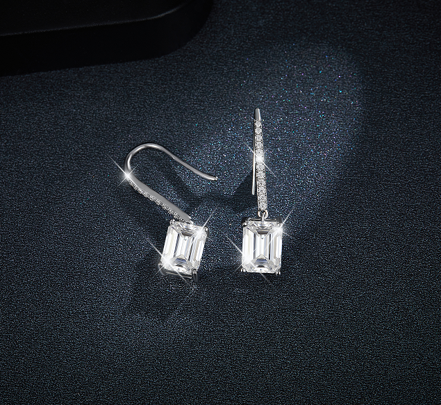 ต่างหูห่วงทรงหลวมขนาด 8x6 มม. 2 กะรัต สีเงินขาวมรกต